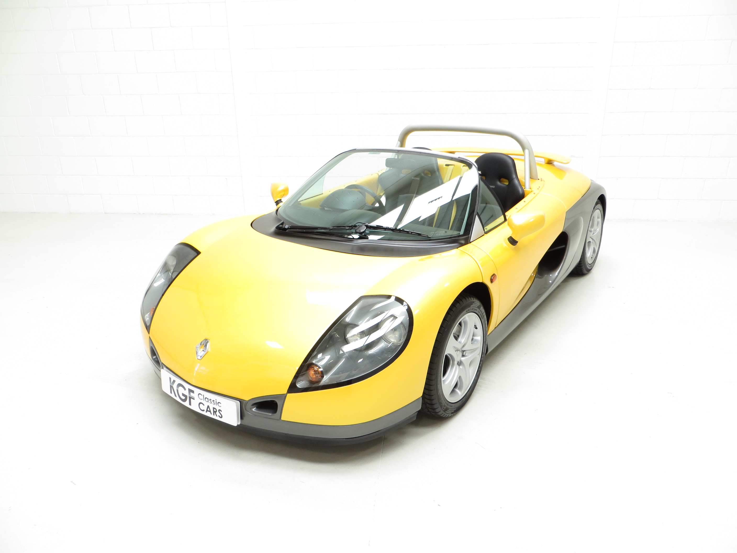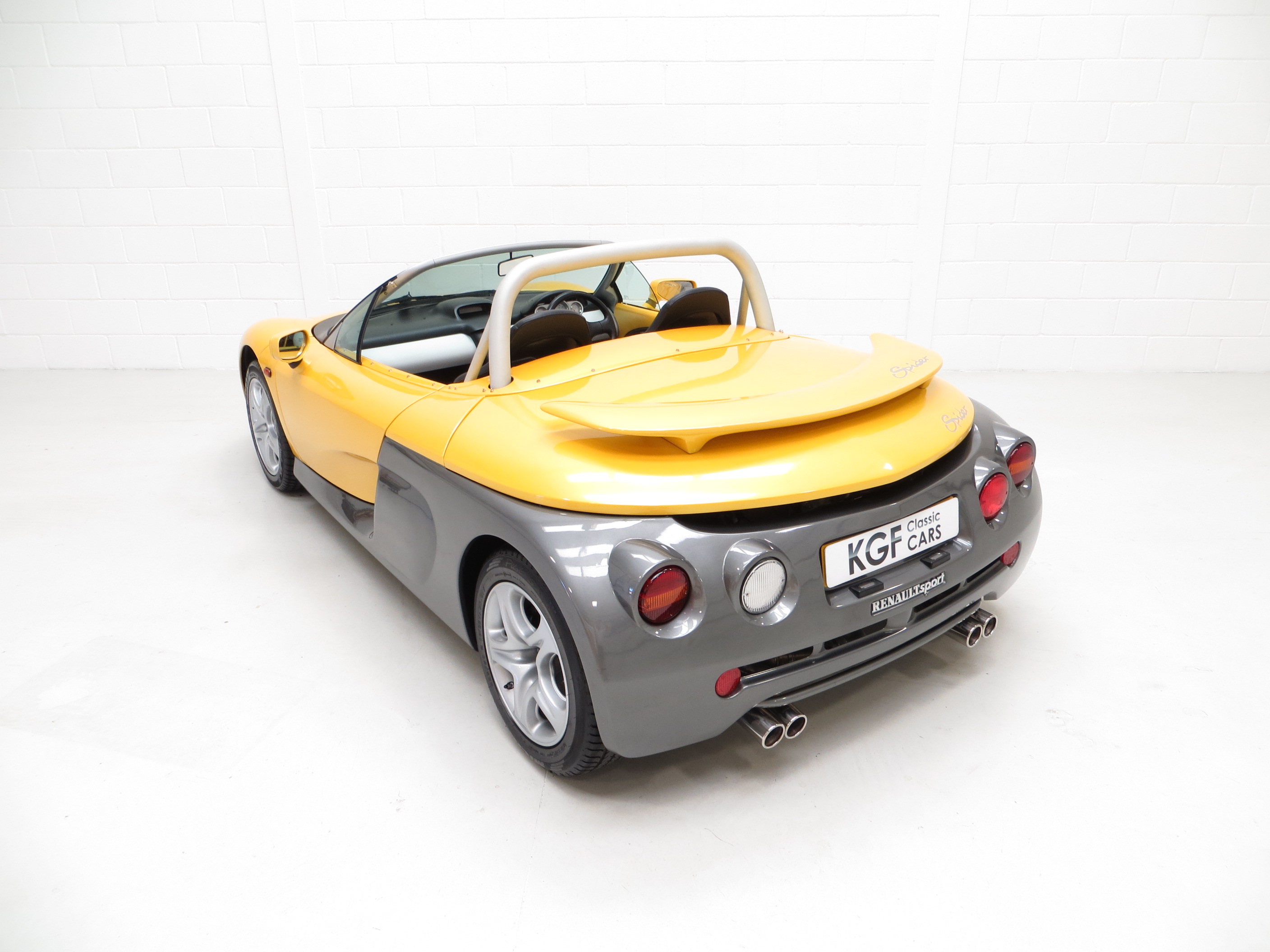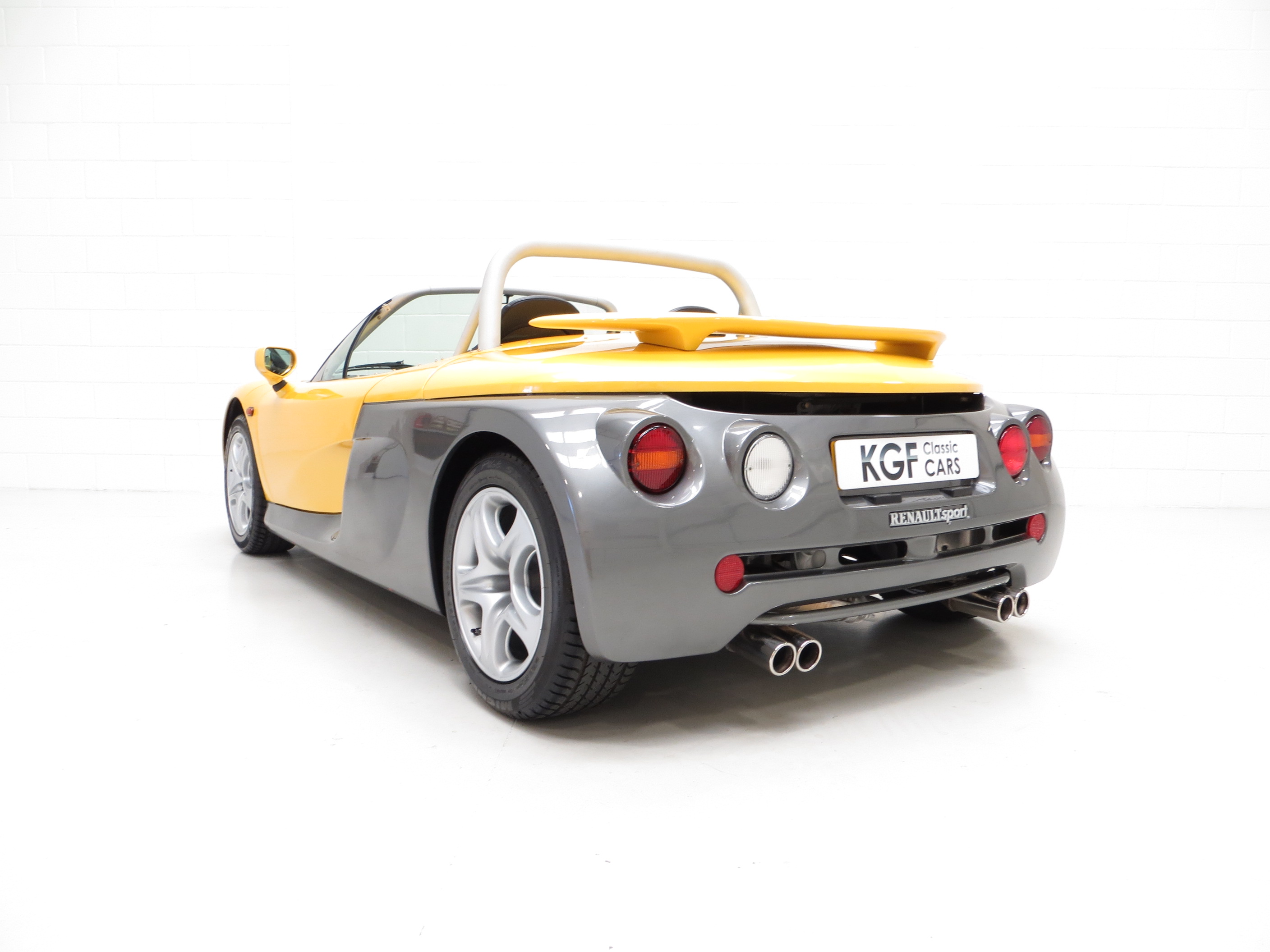 All aluminium spaceframe chassis, aluminium roll bar, vertically opening doors, body-coloured adjustable door mirrors, adjustable pedal positions, removable storage box in luggage compartment, laminated heated windscreen, single wide-sweep wiper, tonneau cover, elasticated door and passenger footwell storage nets, remote bonnet and engine cover levers in passenger door sill, engine immobiliser and coded key. Accessories; Colour coded rear spoiler, all-weather kit, Team Renault ELF Michelin clothing.