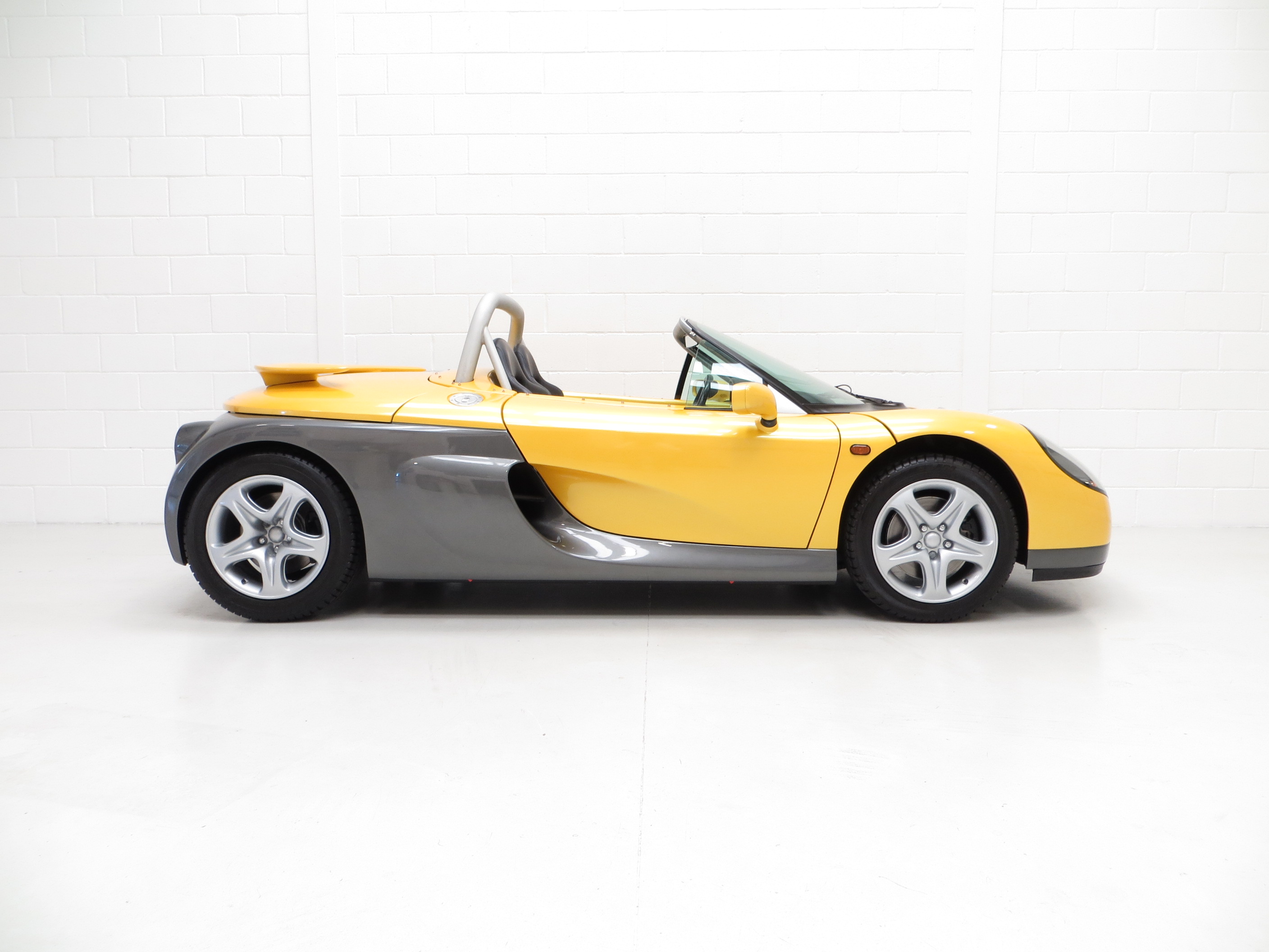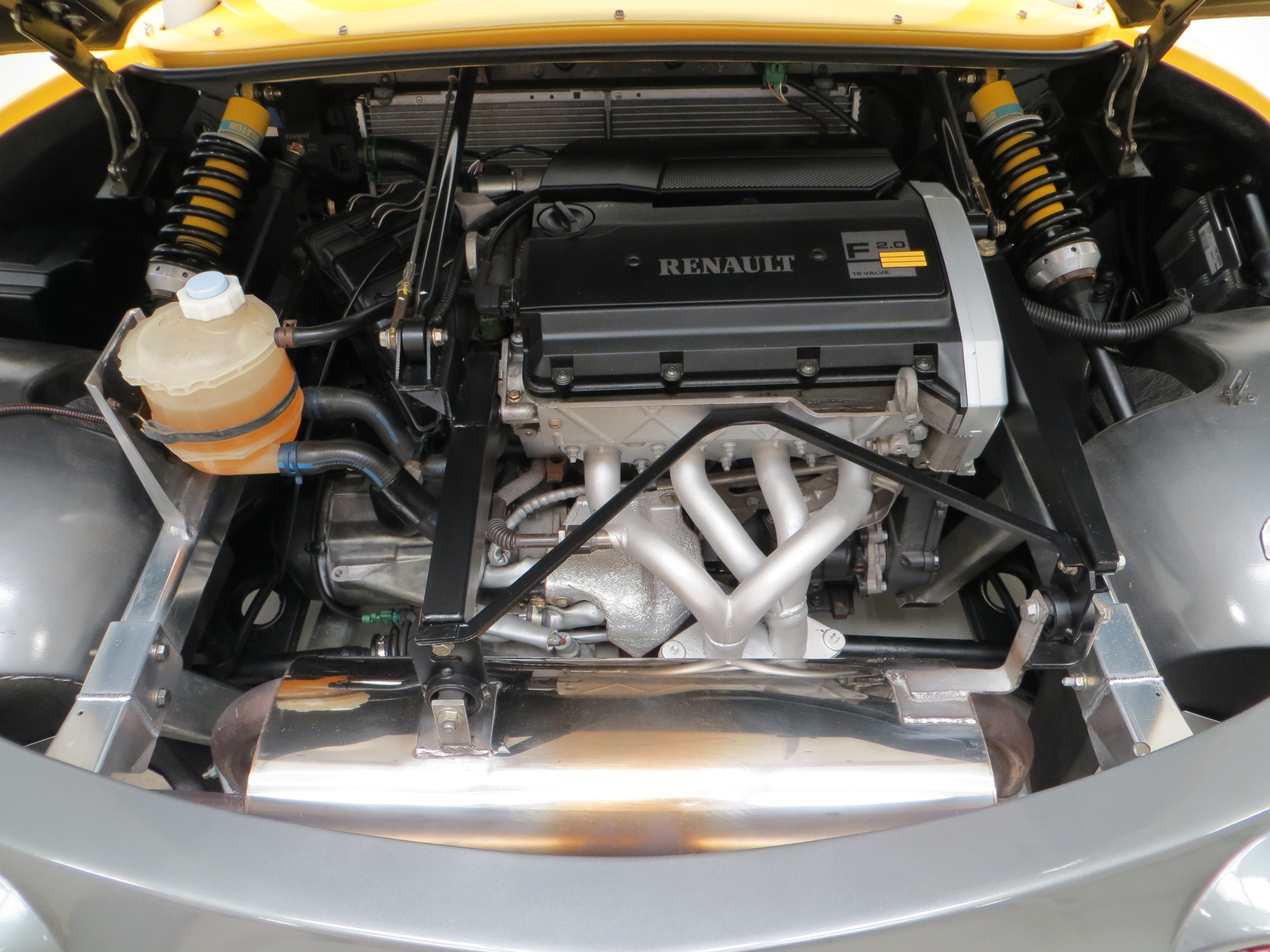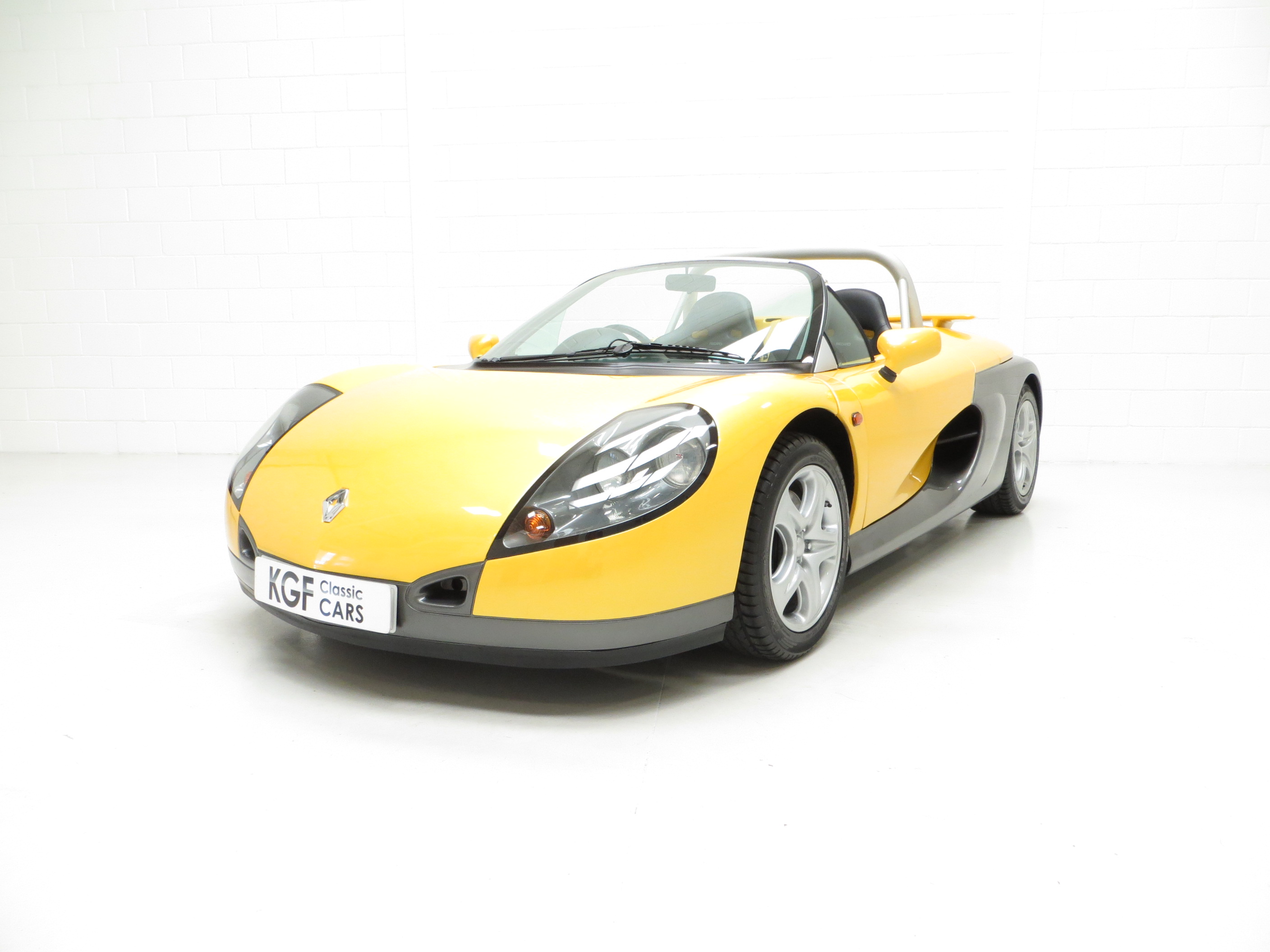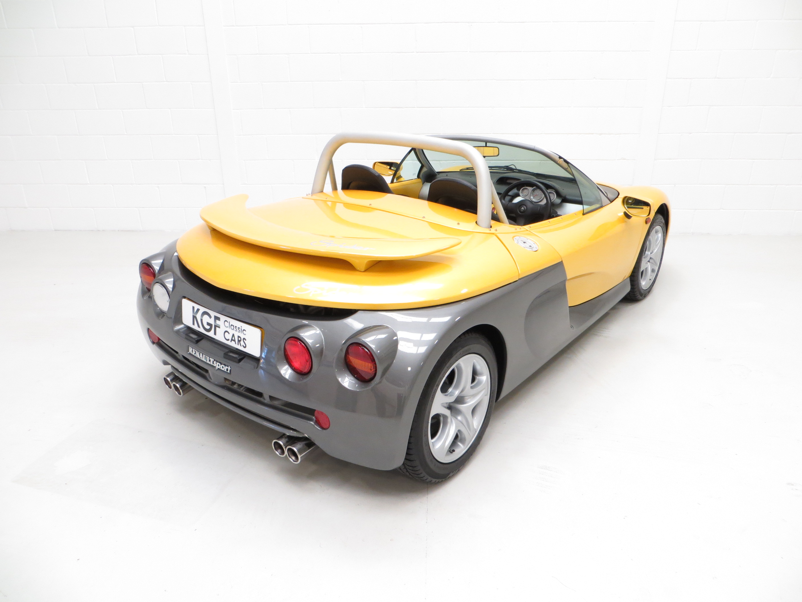 All aluminium spaceframe chassis, aluminium roll bar, vertically opening doors, body-coloured adjustable door mirrors, adjustable pedal positions, removable storage box in luggage compartment, laminated heated windscreen, single wide-sweep wiper, tonneau cover, elasticated door and passenger footwell storage nets, remote bonnet and engine cover levers in passenger door sill, engine immobiliser and coded key. Accessories; Colour coded rear spoiler, all-weather kit, Team Renault ELF Michelin clothing.