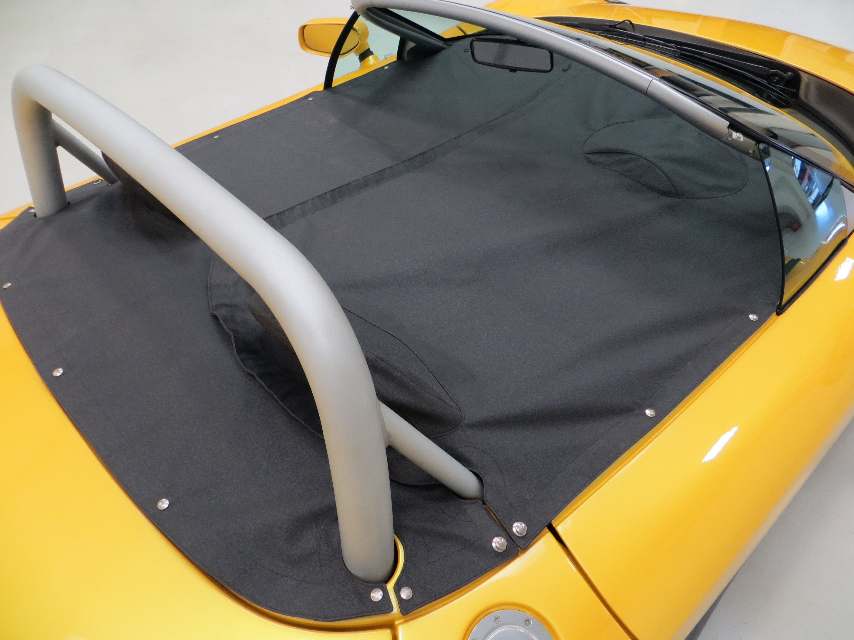Lightweight five-spoke alloy wheels with plated bolts are shod in the original premium 205/50 R16 Michelin Pilot SX tyres with masses of tread. Big 300mm ventilated disc brakes all-round taken from the larger and heavier 166 mph A610 Turbo rein in the exuberant performance of this super-lightweight Spider.