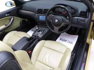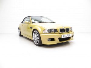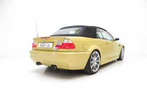Chosen by BMW as the promotional launch colour for the E46 M3, this phenomenal example is finished in Phoenix Yellow Metallic (Code 445). The spectacular vibrant finish is flawless with the original paintwork entirely commensurate with 31,509 miles and cherished enthusiast ownership. Hyper-fussy meticulous scrutiny will find nothing other than the tiniest of markings to the driver’s door handle. All trim sections and discreet BMW M badging are in excellent condition and the front screen still has the BMW airbag warning sticker attached. The black fabric hood is in excellent condition and operates perfectly. All wheel arch apertures and underside are beautifully clean. A fantastic BMW M Car, one of the best in existence.