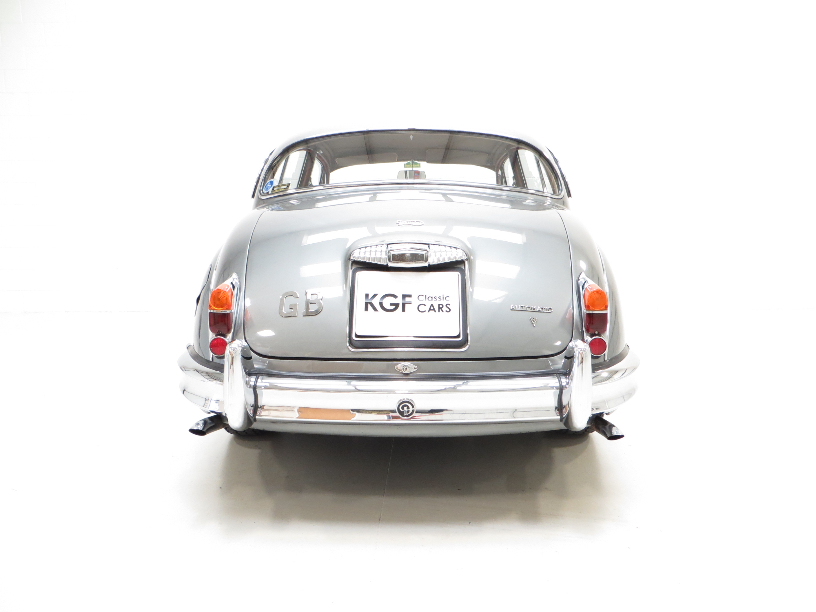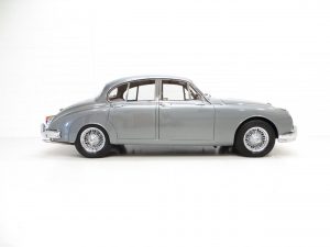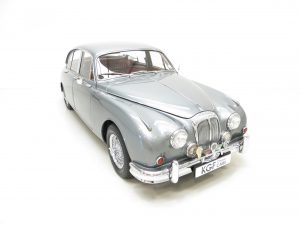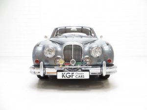 This well-appointed Daimler is the epitome of luxury and opulence, enjoying all the trappings of a Jaguar MKII with a further heightened level of equipment and finish. Finished in the original colour of Silver Grey, the paintwork presents beautifully with a deep uniform shine. The excellent finish displays only minor imperfections and the front and rear screen rubbers show slight age. The extensive high quality chromework is undamaged and in excellent order, including the Daimler specific fluted grill and rear number plate lamp shroud with Daimler lens. The only exception being the front badge bar which shows light pitting to the brackets. All light fitments and lenses are original Lucas fitment including the small side lights incorporated into the front wings which show some discolouration to the lenses. An imposing classic Daimler, truly magnificent and ready to show.