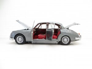 Built on the 13th January 1965 at the Daimler Plant in Coventry, the Jaguar Daimler Heritage Trust Certificate dated 2nd June 1993 confirms this example was produced in Silver Grey with Red interior and automatic transmission. Date of despatch to the original supplying dealer, Russells of Chatham, was on 22 January 1965 and first registration took place on 19th February 1965. Incredibly, just four keepers have owned the car from new, all of whom are traceable in the colossal history file which incudes even the original green buff log book. First owner, Mrs Florence Forlong, owned the car from new until August 1971 where the second keeper, Mr Randolph Marks, purchased it, both of whom are listed on the green buff log book. Upon transfer to the new style V5 document, the ownership can be traced from to the third owner Mr Barry Pladdys, and finally the previous keeper, Mr Michael Parker.