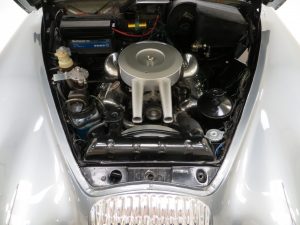 The 90 degree V8 cylinder engine with twin SU HD6 semi-downdraught carburettors displaces 2548cc to produce 140bhp at 5800rpm and a top speed of 112mph. The original twin SU carburettor set up remains fitted, and the vehicle build plate and front panel stamping match exactly to the vehicle records found on the Heritage Certificate held in the history file. The strong, time-proven Borg Warner Type 35 automatic transmission with column shift operates as it should.