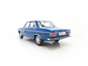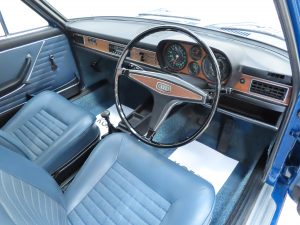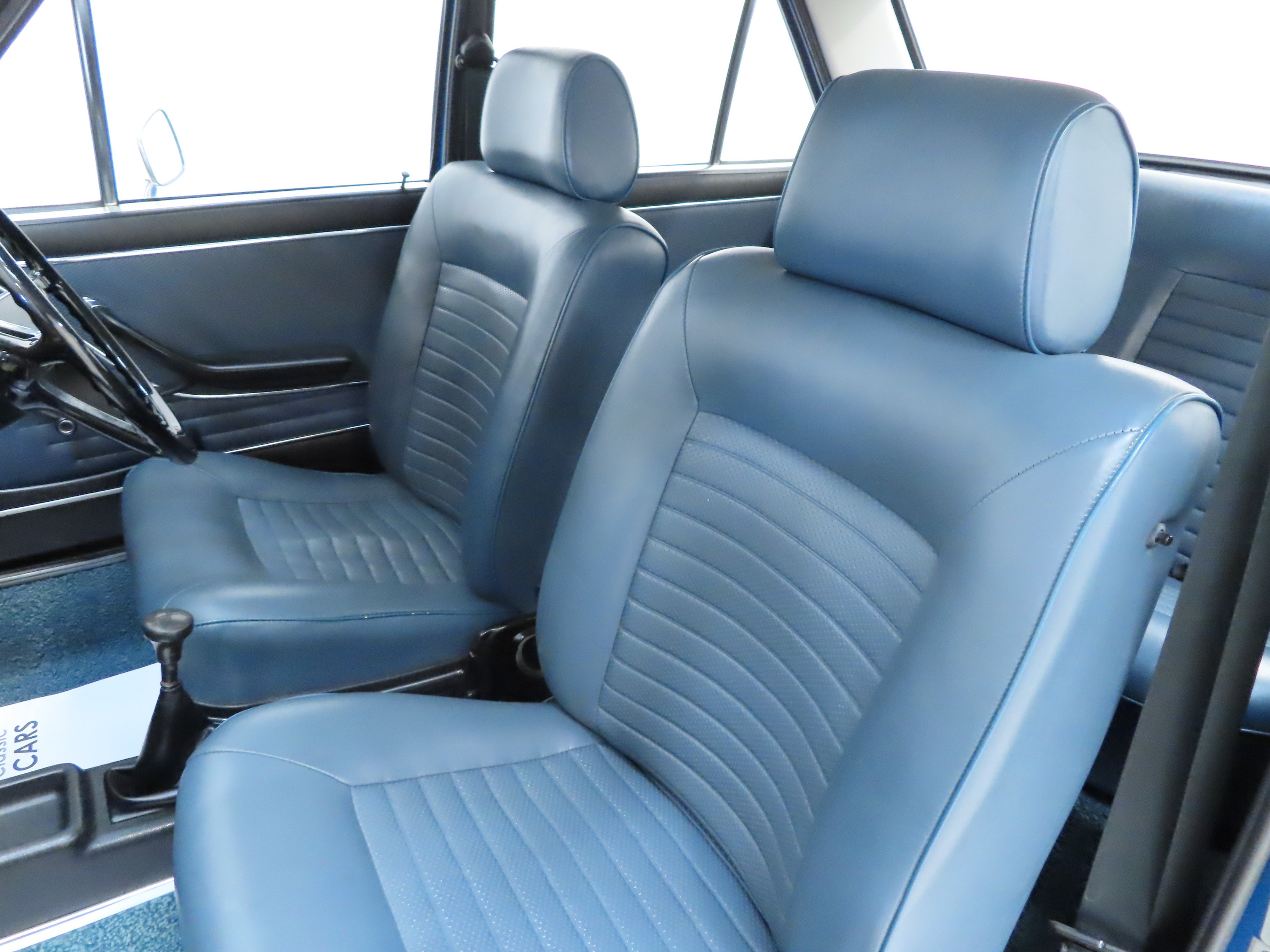 The posture-formed PVC upholstery in Smoke Blue has remained in outstanding condition with no rips or tears whatsoever and all seat structure is firm and has retained correct shape. The carpet has been well protected and the perforated headlining is clean and fully intact. The high-quality fascia with immaculate wood trim houses fully functioning controls and equipment including the original working factory optional push-button radio! There is no damage to the dash materials which is rare on the 100 model. Factory stickers remain in the door shuts and even the supplying dealer plaque is still affixed to the dashboard and the original tax disc holder has been kept. A spacious and wonderfully quality interior.