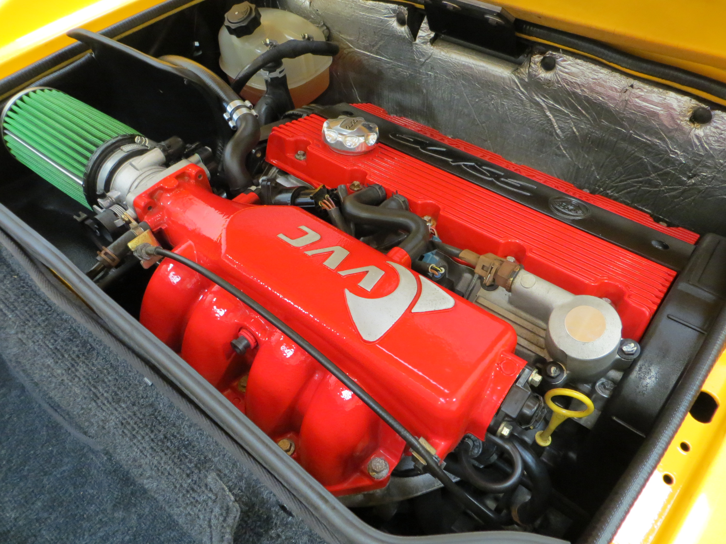 Unique Lotus-designed 6-spoke light alloy wheels manufactured by OZ and fitted as standard on the 111S are unmarked except for a light mark to one rear wheel. The Lotus centre badges are pristine and the original red Koni monotube dampers combined with Yokhama Advan tyres provide phenomenal grip. Cast iron cross drilled ventilated discs with unique Lotus/AP Racing opposed piston front calipers stop the car safely and quickly.