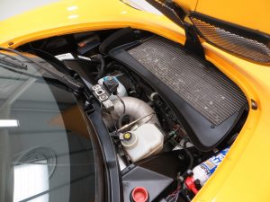 Engineering excellence is built into the interior with the aim to save weight and provide maximum driver enjoyment. The optional Black Leather sports seats are in pristine condition and the unique Lotus/Nardi steering wheel is unmarked. The standard carbon effect dash proudly displays the ‘111S’ logo and the crystal clear STACK instrumentation functions correctly providing at-a-glance information. The wide sills are protected by a leather/cloth pad with the drivers side showing minor marks easily made with even the first entry/exit into the car! The doors remain open thanks to undamaged door retaining plates and the windows wind up and down smoothly. An interior Colin Chapman would be proud of.
