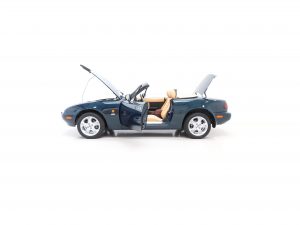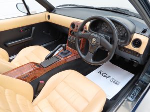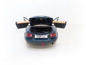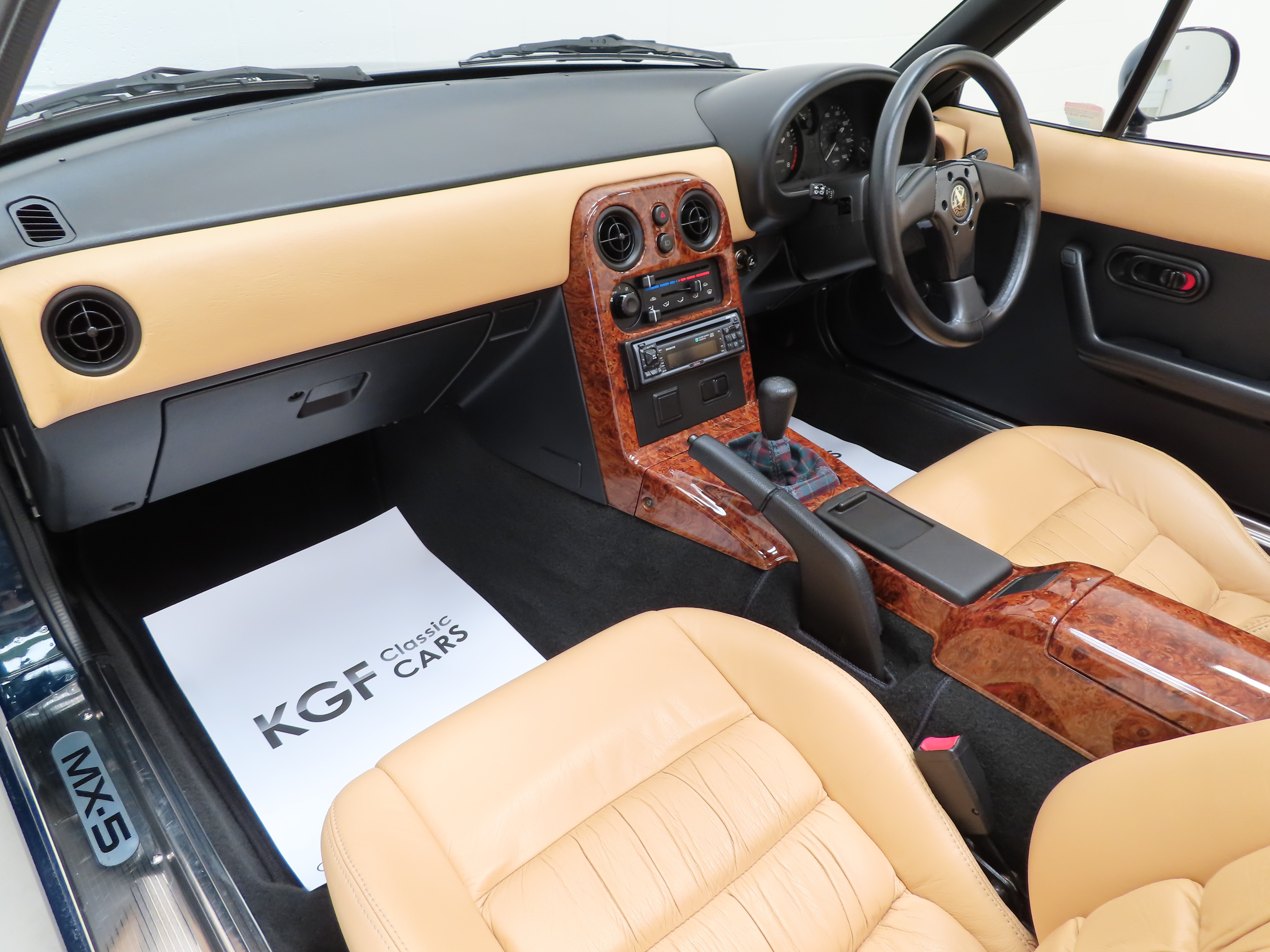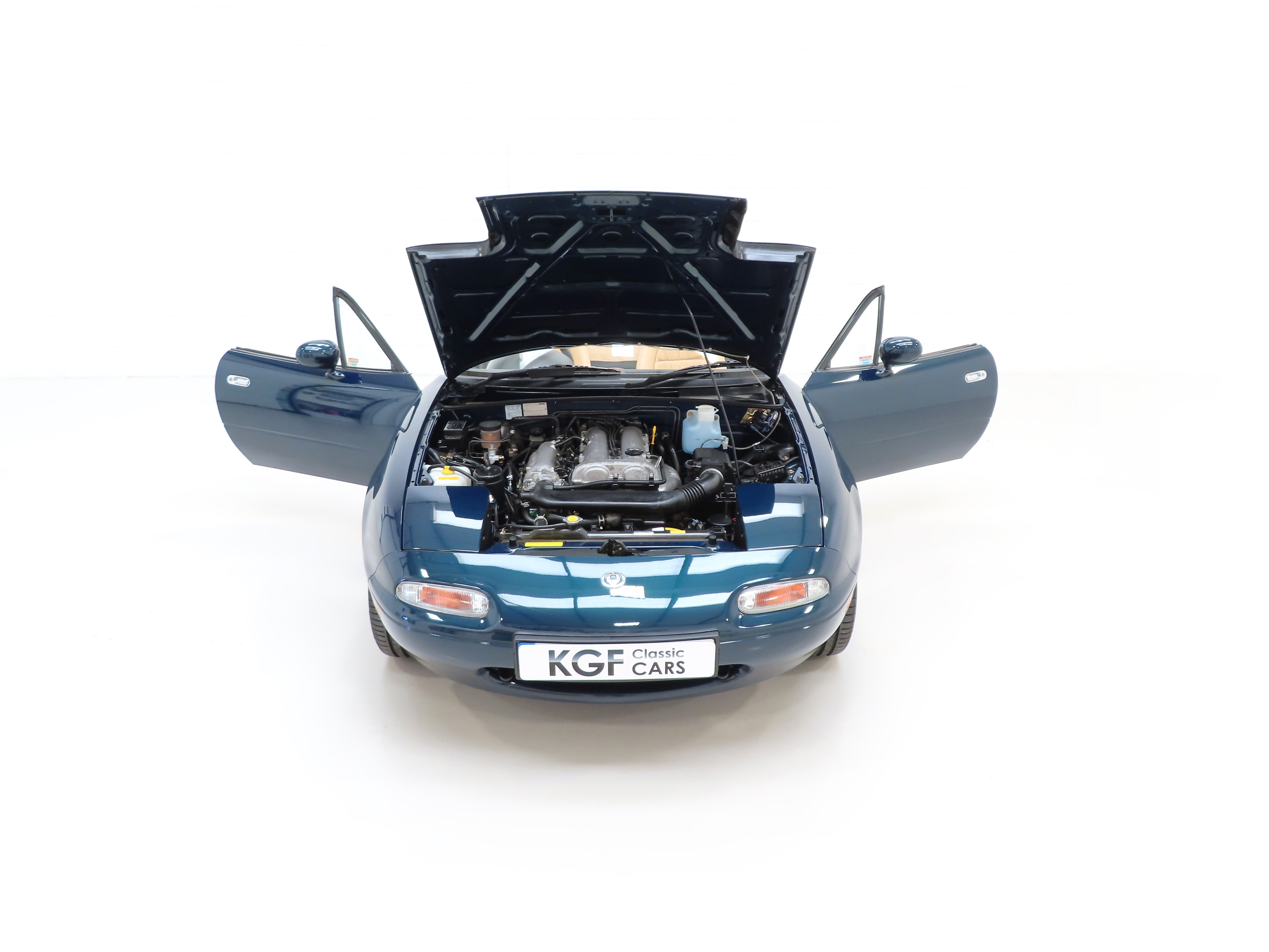 The Mazda MX-5 Gleneagles special edition was a limited production of just 400 cars and commemorates the tradition, prestige and quality of the famous Gleneagles Hotel and Golf Club in Perth, Scotland. This exceptional example has covered a genuine 12,901 miles from new and as such the car is simply breath taking in every possible way. The unique Montego Blue metallic paint, (Code M8), presents in fabulous condition with a stunning deep shine throughout. All bodywork panels are arrow straight and the sills and underside are clean and free from excess applied underseal to allow easy inspection of the superb structural integrity. Absolutely all trim sections, glass, lights and Gleneagles wing badges are undamaged the even the spot welds are visible to the rear wheel arches, long lost on most examples due to rust repairs! The original hood is excellent and the plastic rear screen clear and supple thanks to garage storage away from UV light. Without question one of the finest remaining of the original 400 produced and with such low mileage too.