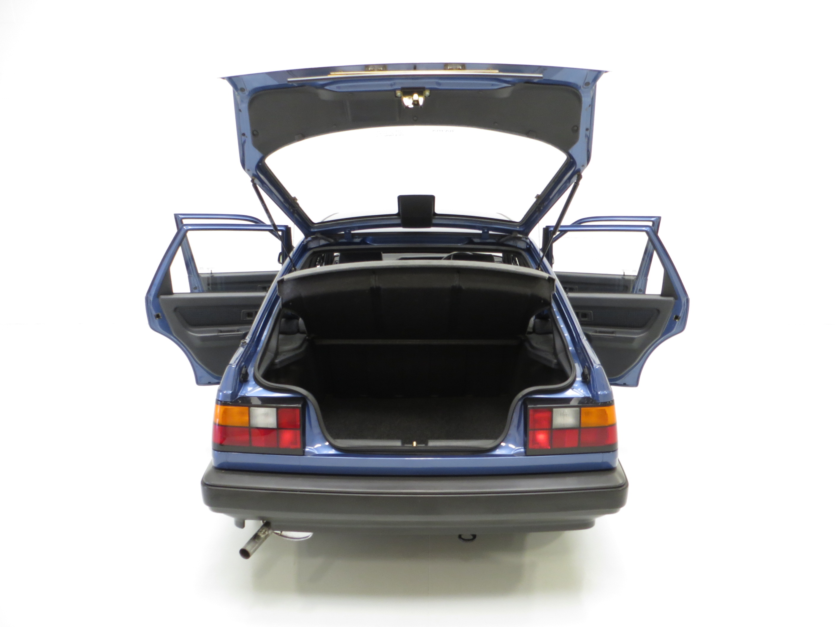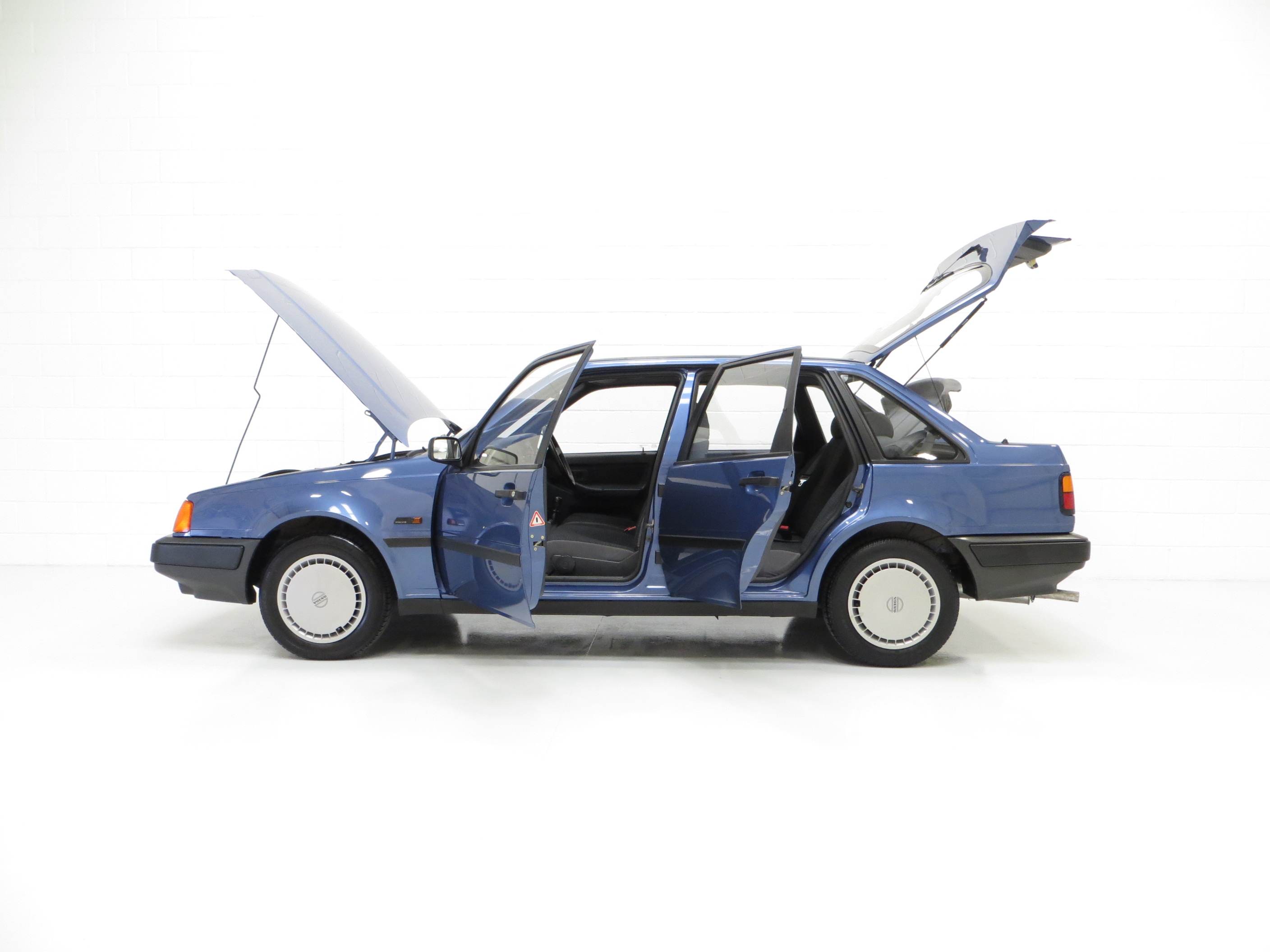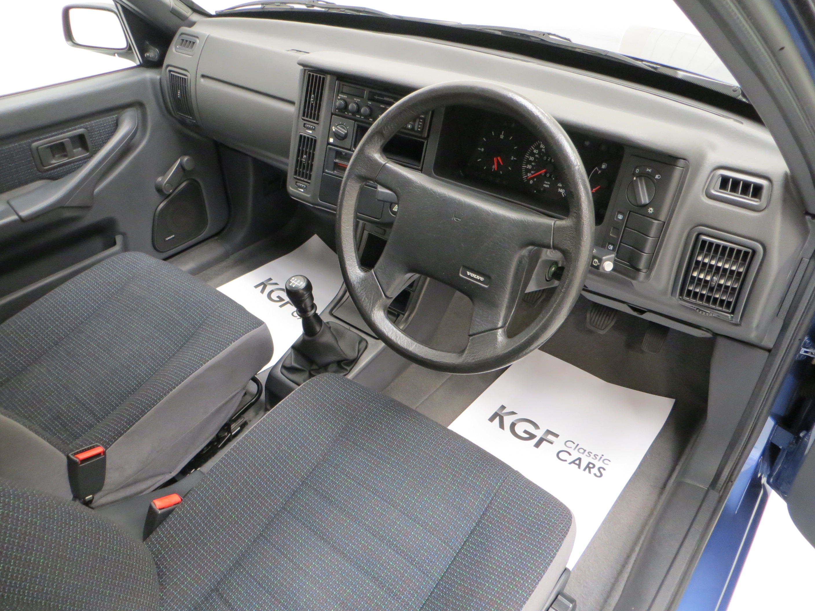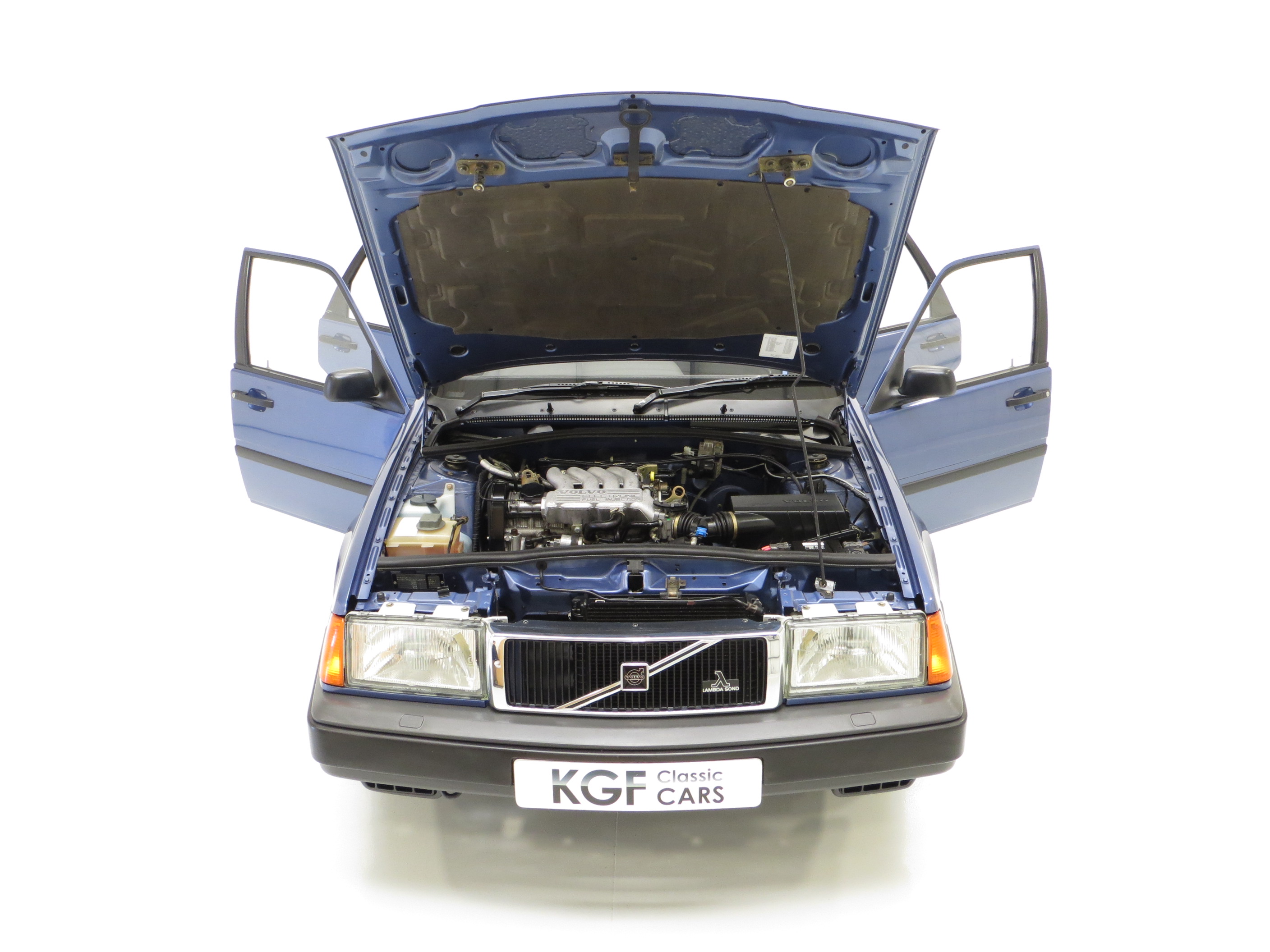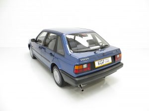 Finished in factory optional Volvo Paris Blue Metallic, (Code 318-1), the original paint finish has an incredible polished uniform finish, a testament to the superb quality Volvo paint and the one owner from new, garaged and exceptionally low mileage credentials. All panels are factory fitment and the underside is incredibly clean, free from repair and very original. Close scrutiny will detect nothing other than tiny insignificant markings, namely two tiny dings to the offside front wing, one to the front roof edge and one to the boot. The immaculate bumpers and trim sections are intact and free from damage and scuffs. The supplying Volvo main dealer number plates are fitted, as is the Lambda Sond grill badge and the supplying dealer rear screen sticker, which the fastidious owner even covered in tape to protect from sun damage! Altogether a remarkably well preserved modern classic Volvo.