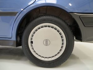 The standard 14in steel wheels wear the original Volvo hubcaps which are in superb condition with no kerb damage and only faint markings. The 165/70 R14 tyres have excellent tread remaining, with both rear tyres and the unused spare being the original Dunlop SP9 items. The spare wheel is housed along the original jack and wheel brace in the immaculate boot area which displays factory stickers and even owner applied stickers confirming service dates! The diagonal split dual system brakes feel assured and bring the car up to a straight and steady halt.