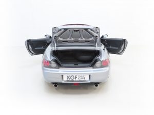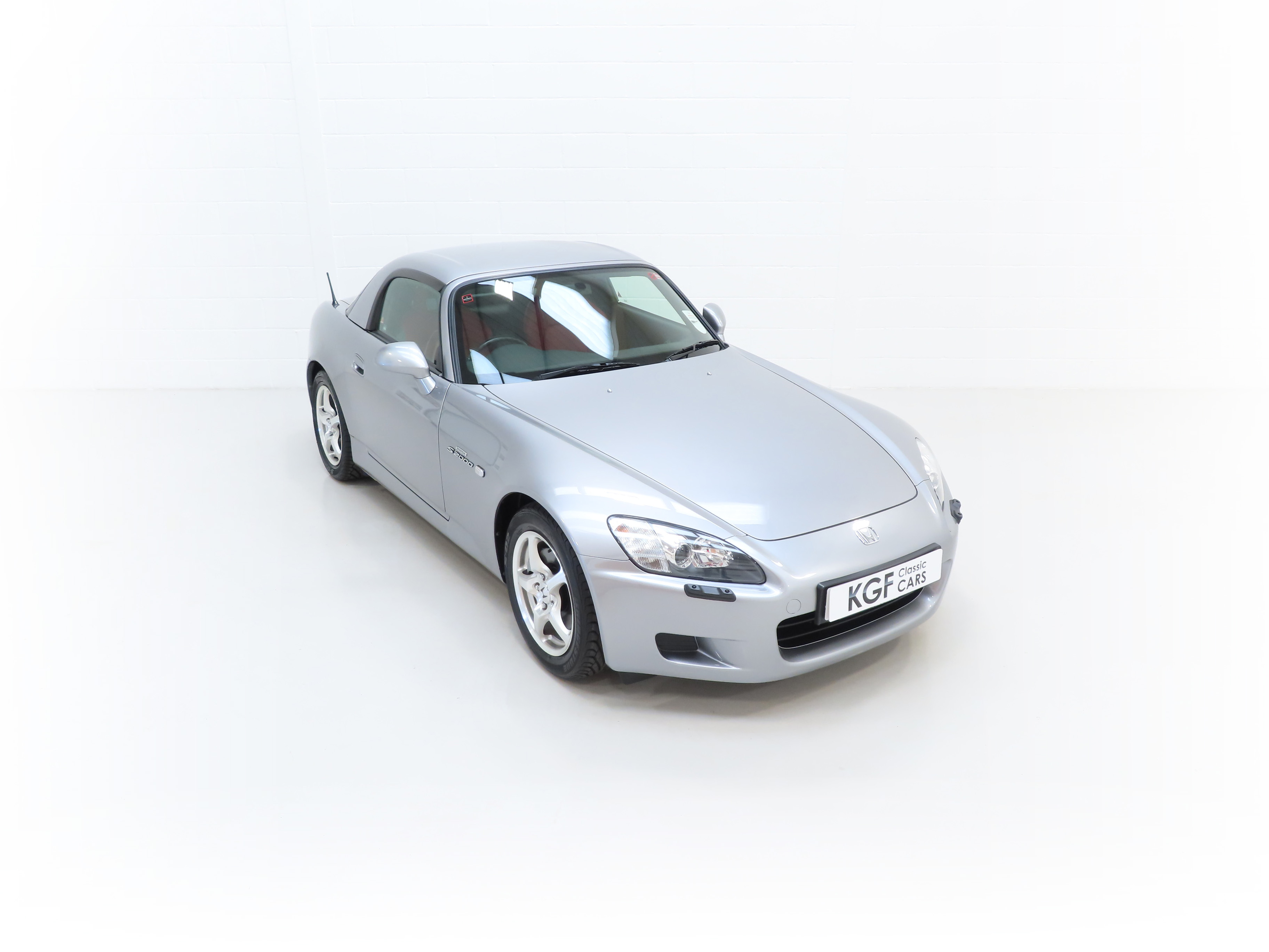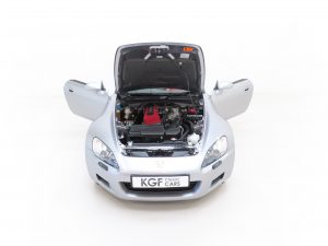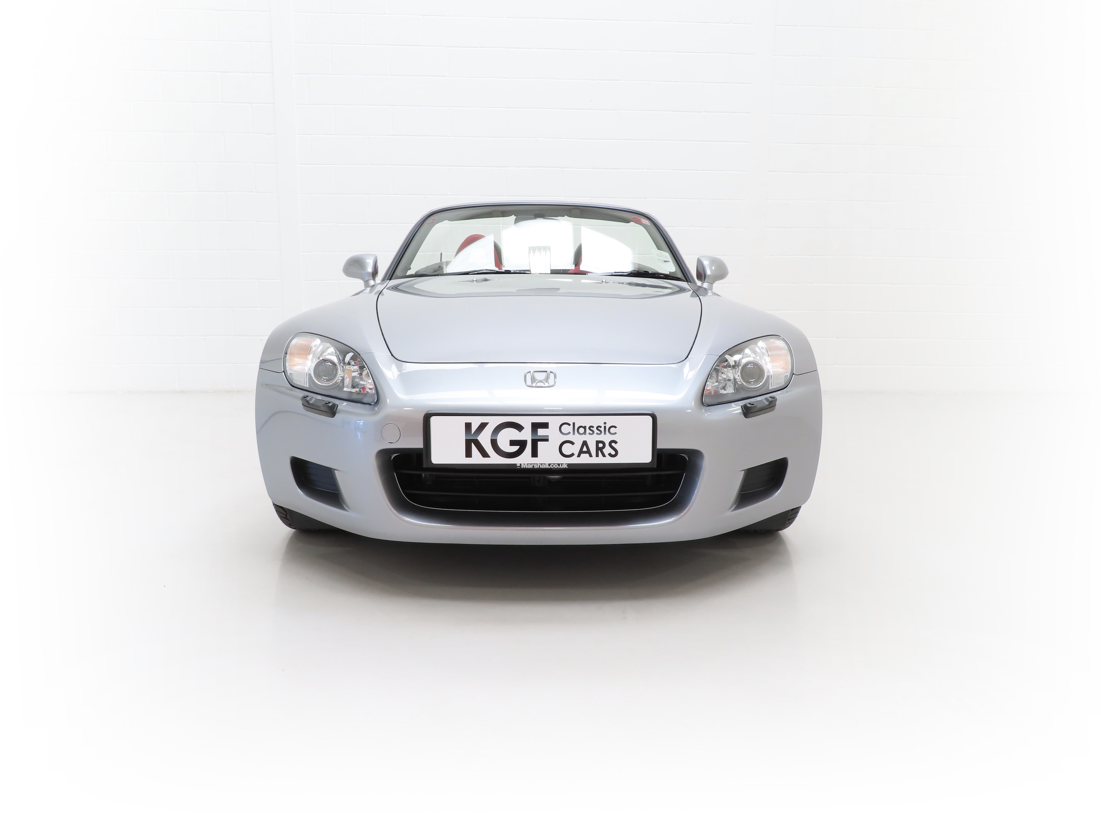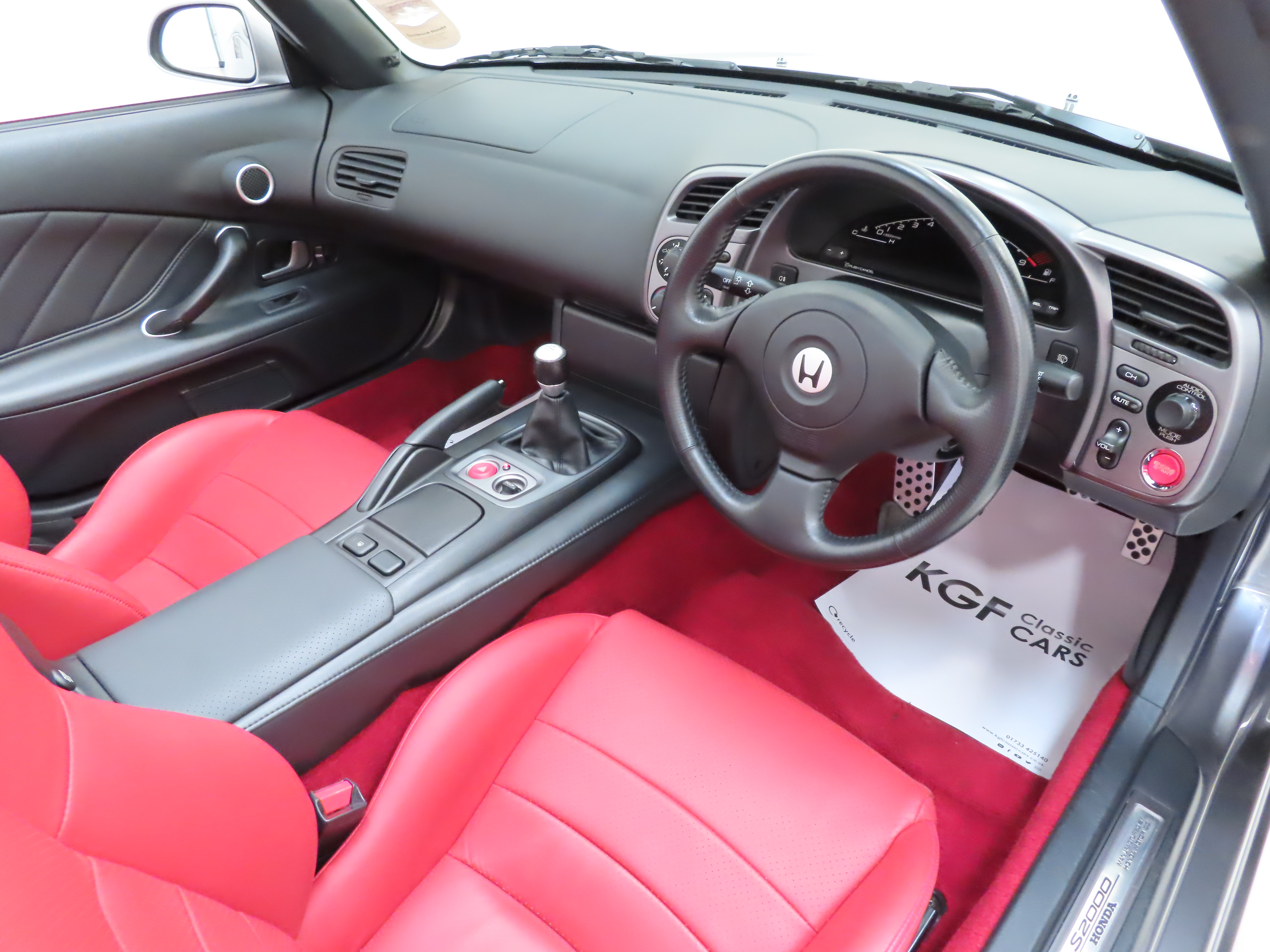 Finished in the official launch colour of Silverstone Metallic, (Code NH 630M), this drop dead gorgeous two seat sports car looks beautiful from every angle. The original paintwork gleams with a uniform finish, commensurate with its 8,318 mile and one owner from new credentials. All lightweight panels are beautifully straight and in preserved condition with close scrutiny revealing a few tiny stone chips. The expensive GT specification hard top with stand has been in storage since new and the immaculate black factory fitted hood is quick and effortless in operation. The Perspex rear screen to the folding hood is crystal clear. The HID headlights are clear with no discoloration, as are the original factory fitted rear lenses and correct orange side repeaters. All trim sections and S2000 badges are factory fresh. The underside is remarkable in that the coloured factory PDI dabs and even chalk marks to the rear subframe have not been worn away! This spectacular example represents an original, unmolested and truly cherished car that has firmly cemented Honda’s repute for innovation and precision engineering.