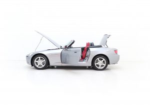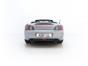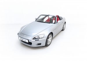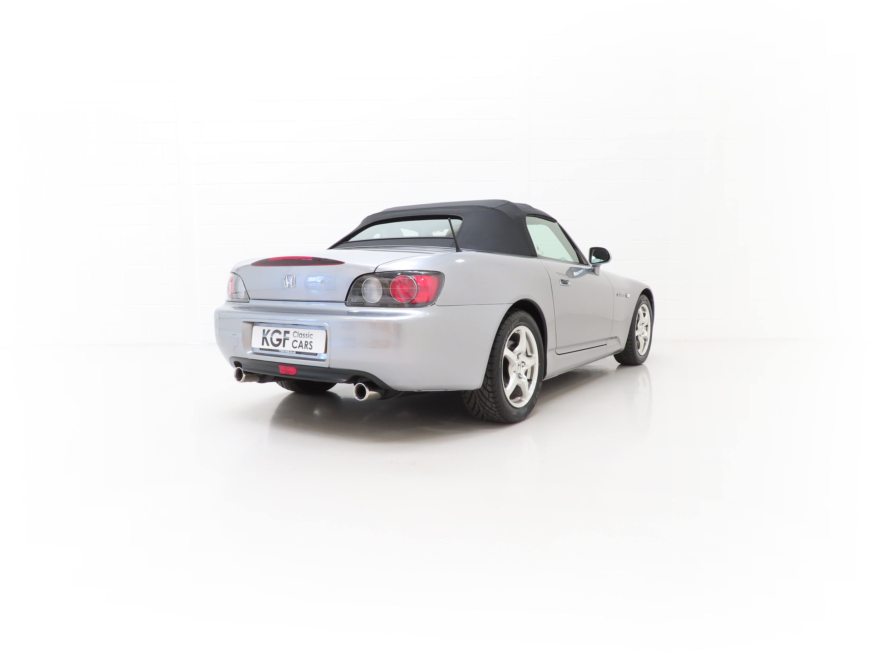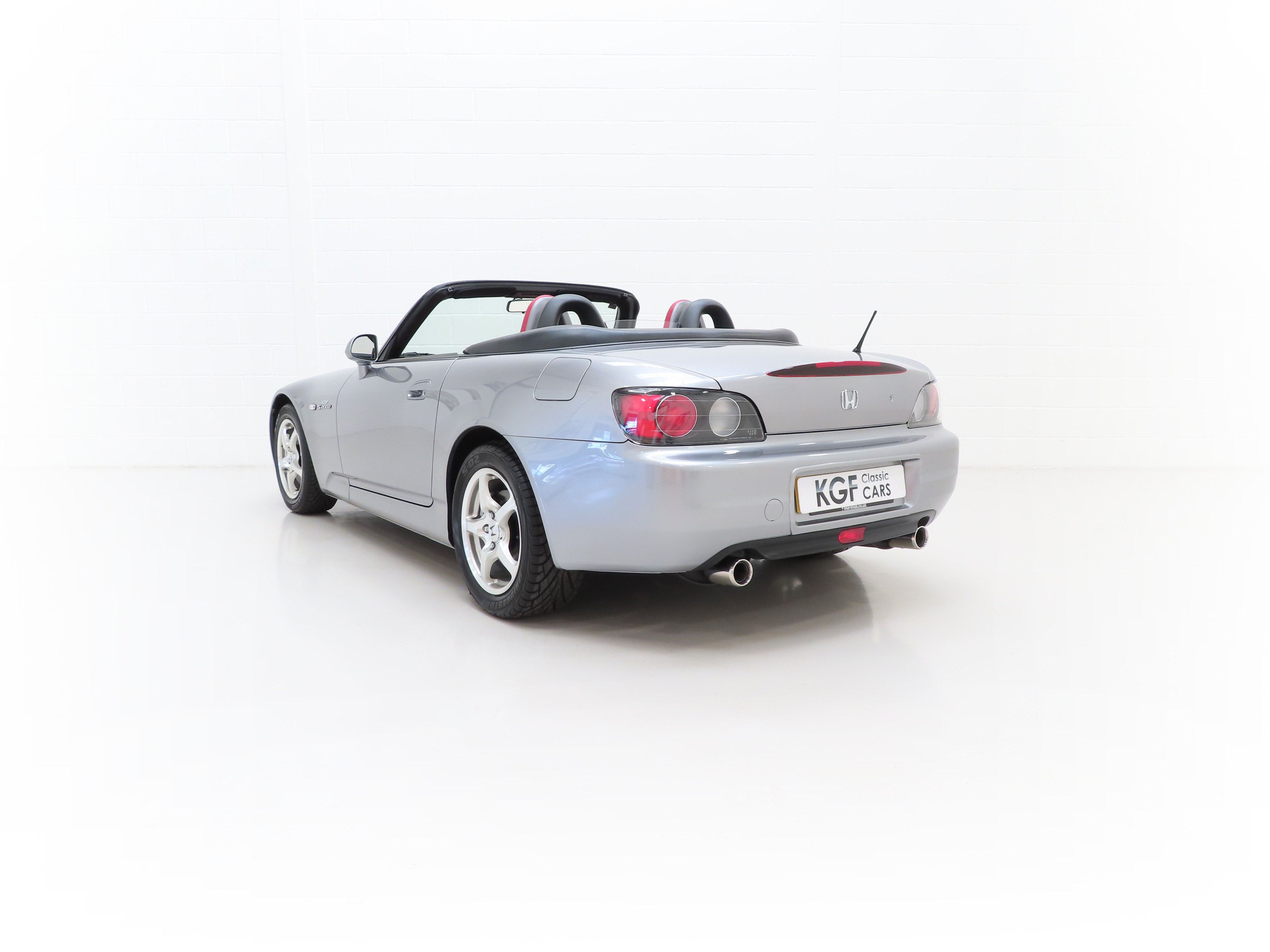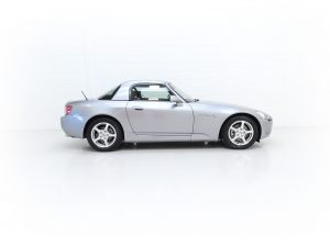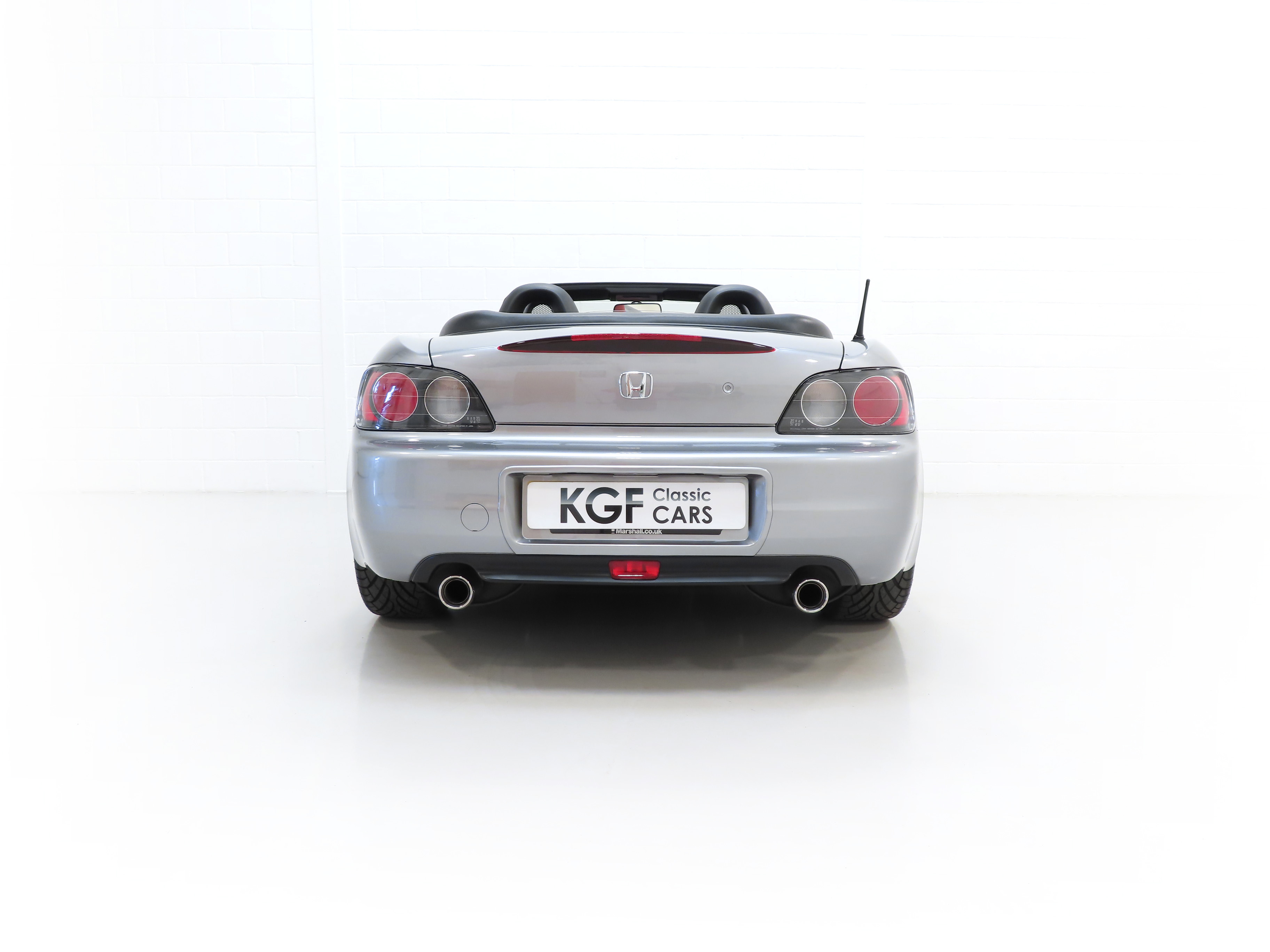 Finished in the official launch colour of Silverstone Metallic, (Code NH 630M), this drop dead gorgeous two seat sports car looks beautiful from every angle. The original paintwork gleams with a uniform finish, commensurate with its 8,318 mile and one owner from new credentials. All lightweight panels are beautifully straight and in preserved condition with close scrutiny revealing a few tiny stone chips. The expensive GT specification hard top with stand has been in storage since new and the immaculate black factory fitted hood is quick and effortless in operation. The Perspex rear screen to the folding hood is crystal clear. The HID headlights are clear with no discoloration, as are the original factory fitted rear lenses and correct orange side repeaters. All trim sections and S2000 badges are factory fresh. The underside is remarkable in that the coloured factory PDI dabs and even chalk marks to the rear subframe have not been worn away! This spectacular example represents an original, unmolested and truly cherished car that has firmly cemented Honda’s repute for innovation and precision engineering.