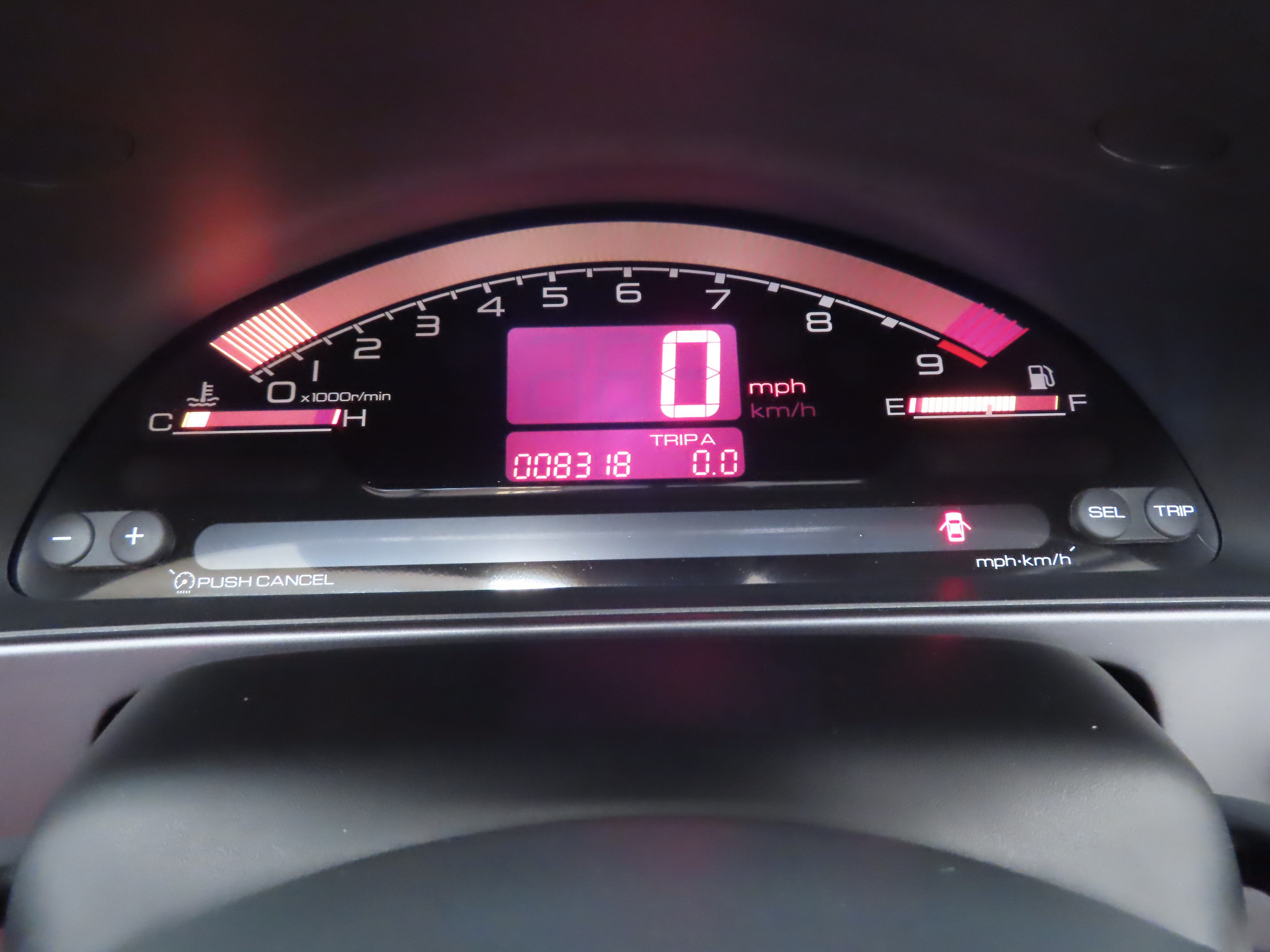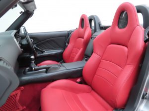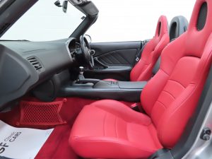 A perfectly proportioned, functional and exquisitely finished interior is designed solely to optimise driver enjoyment. The pristine high-grade luxury Red leather, (Code Type Z), remain in immaculate condition with the figure-hugging seats firm and all bolsters fully intact and in shape. The matching door cards are perfect and the bright red carpeting is fresh, unfaded and unworn having been protected from new by genuine Honda fitted carpet mats. The dashboard and fascia are as new and the red start button portrays Honda’s racing heritage. The digital head up display with race style tachometer and speedometer operates perfectly with all pixels intact and functional. Originality seekers will be pleased to see factory stickers remaining in the door shuts and the original Honda 2SFO stereo remaining neatly behind the discreet flip up cover. A meticulously designed sports car interior.