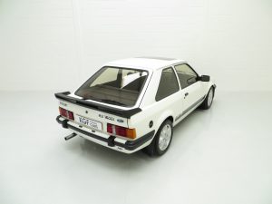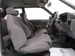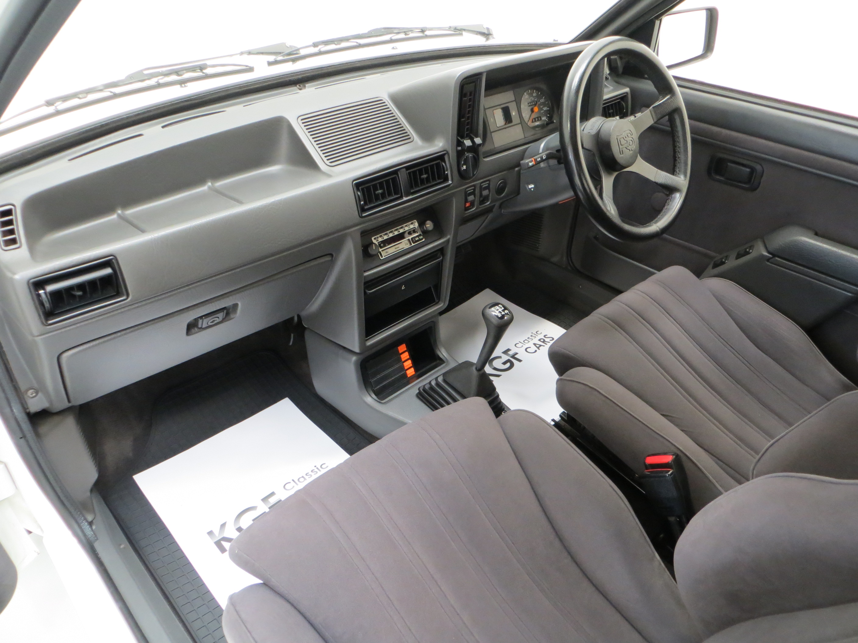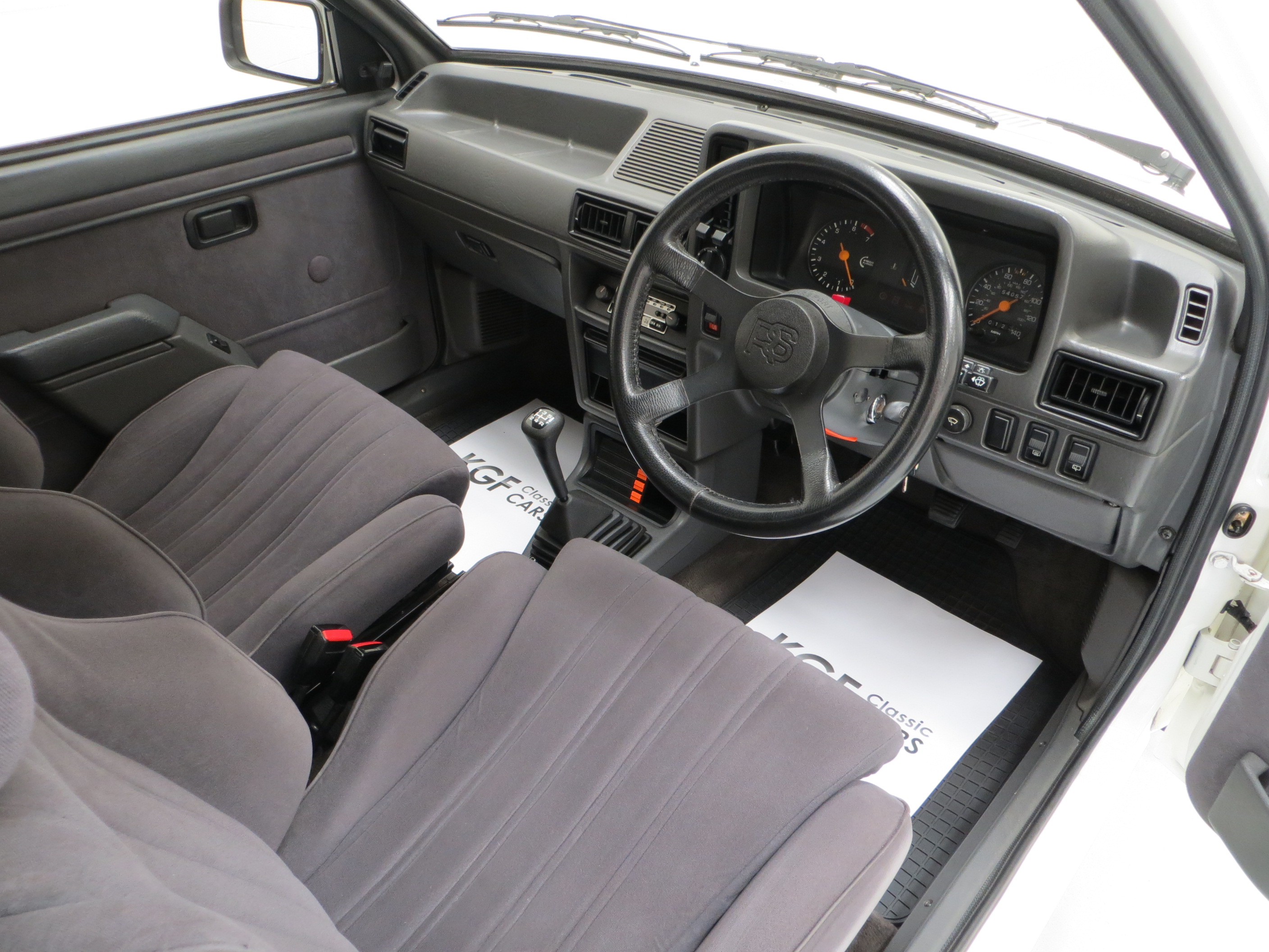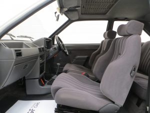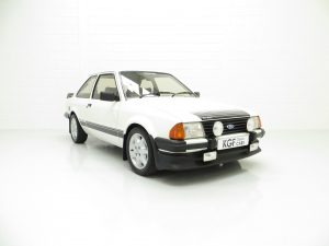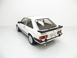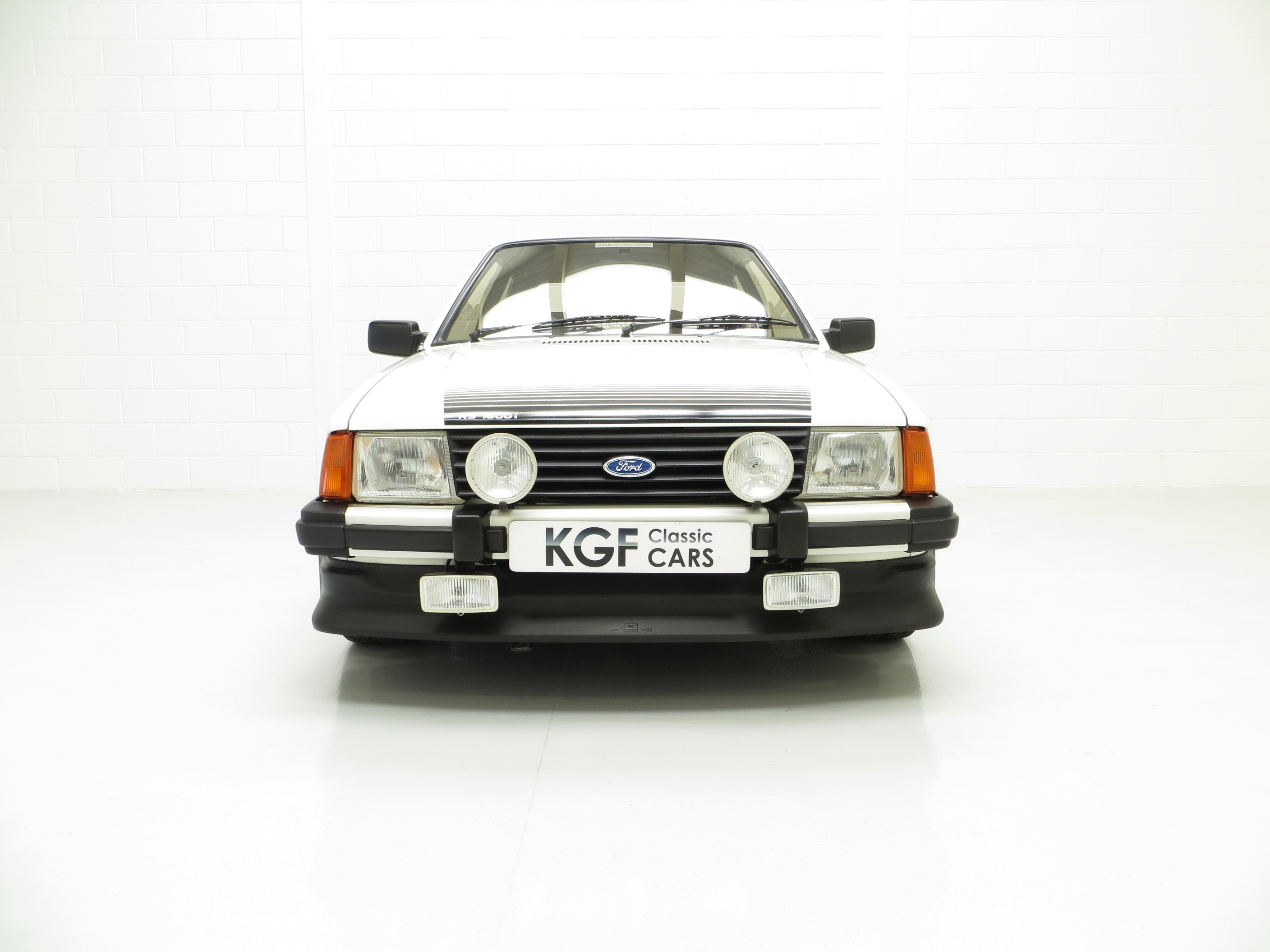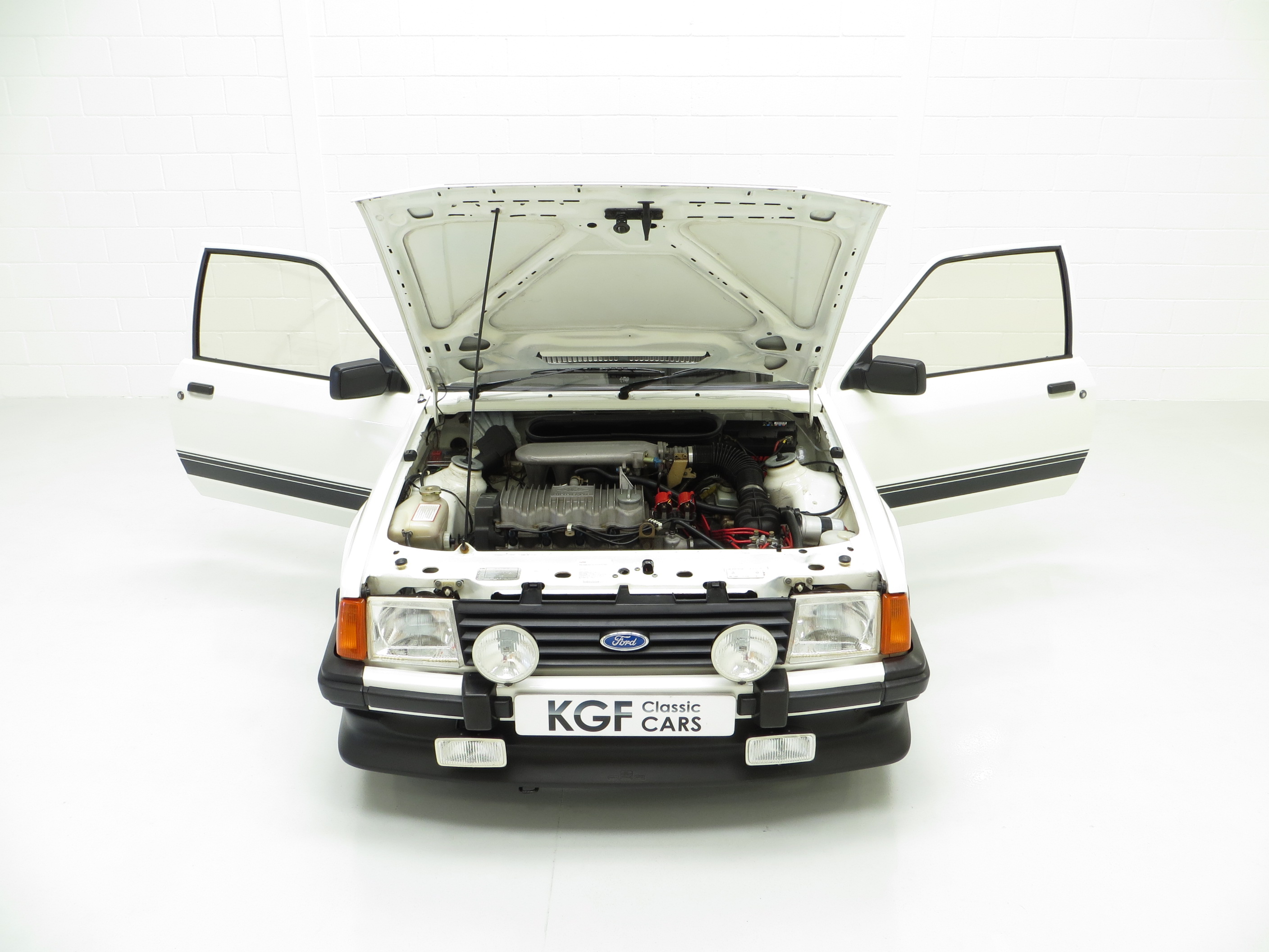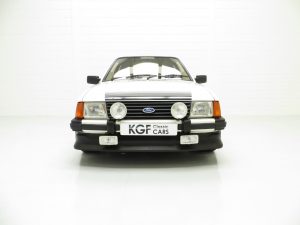 This RS1600i is finished in desirable Diamond White, (Code B3) which contrasts the striking RS1600i decals on the bonnet, boot lid and sides beautifully. The correct stance is instantly recognisable as this example still sits on the special Koni shock absorbers only fitted to the RS1600i lowering the car by 23mm and often replaced. The original rear spoiler is straight with no distortion issues and the front spoiler displays clearly the Motorsport logo and part number. Purists will also relish in the factory correct Hella driving and fog lights being fitted and the optional all-round tinted safety glass being number plate etched including the vulnerable original front screen and headlamps. A deep lustrous shine graces all the original panels for those enjoying the show circuit and even the front wings are date stamped! Tiny imperfections to the lower sill where the paint has flaked off and one wheel arch lip are barely worthy of a mention. A very rare and desirable example of the first front wheel drive Ford ever to wear the RS badge!