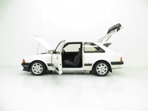 Introduced in September 1981 this stunning example was built in the final month of production in July 1983 and is one of 2,600 UK examples and just one of 530 in Diamond White. (Source: RS Owners Club). Registered new on the 7th October 1983 by Ford Rallye Sport Dealer, Johnsons of Gainsborough to a Mr Fraser this vehicle has a phenomenal history file and has covered a warranted 54,711 miles. Virtually every MOT certificate and bundles of Ford service invoices are neatly filed and will fascinate the avid and conscientious enthusiast wanting to buy a superb example backed with incredible history so rarely found. Furthermore, this example has show winning provenance with Cups and Shields won in the early 1990’s at prestigious events such as Ford National Day, Castle Coombe Day and Beaulieu Day. The vehicle has numerous Ford RS Owners Club valuations and was owned by a previous RS1600i Registrar. Since retiring from the show circuit the vehicle has been housed in a private collection consisting of some of the lowest mileage 1980’s Hot Hatches including a 9,000 mile Renault 5 Turbo and 16,000 mile Vauxhall Astra 16v GTE.