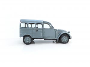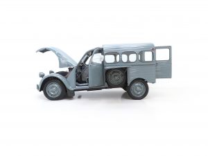 Conceived by an extraordinary design brief by Citroen MD Pierre-Jules Boulanger in 1936 to enable four farmers to drive 50 kg of farm goods to market at 31mph in and across muddy unpaved roads if necessary. The car would use no more than 3 litres of fuel to travel 100 km (78 mpg). Most famous, was the requirement be able to drive across a ploughed field while carrying eggs without breaking them! The TPV (Toute Petite Voiture – Very Small Car) project was abandoned in September 1939 when the French government declared war on Germany. Finally revealed in 1948 the Deux Chevaux was an instant commercial success with a five-year waiting list and second-hand Tin Snails costing more than new ones! Numerous variants of the 2CV in its 42-year production run included the AZU Fourgonnette (Van) which was a familiar sight for many years and commonly used by the French Post Office ‘La Poste’ and EDF (Électricité de France).