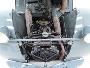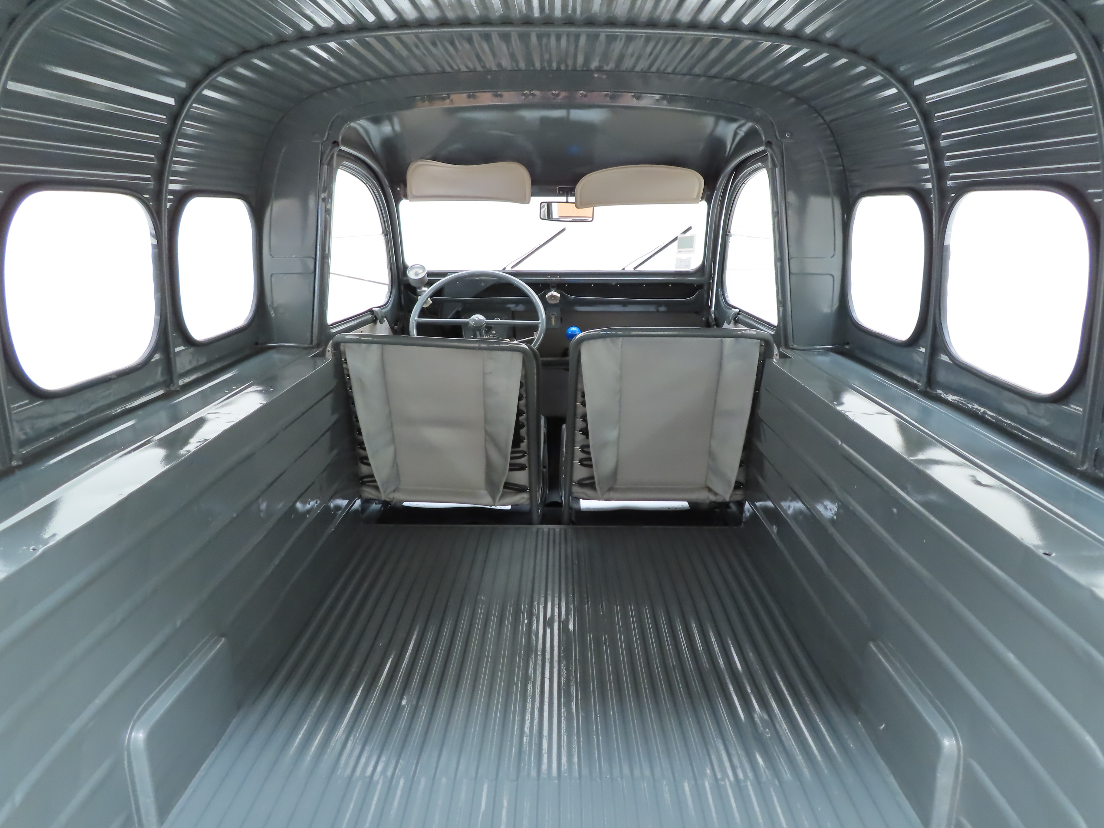 The air-cooled, flat-twin, four-stroke 425cc engine is the original factory unit as fitted to this 1958-year model complete with AZU stamped engine plate with number clearly legible. The wonderfully clean engine has block stampings as well as the original numbered chassis plate which again corresponds with a 1958 AZU Fourgonnette. Prime the carburettor and the engine thrums into life at the pull of the switch and settles to a surprisingly smooth idle ready to exploit the ferocious 12.5hp performance! The transmission is dash mounted and has fours speeds which are easy to use once the uniqueness is familiarised.