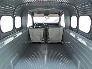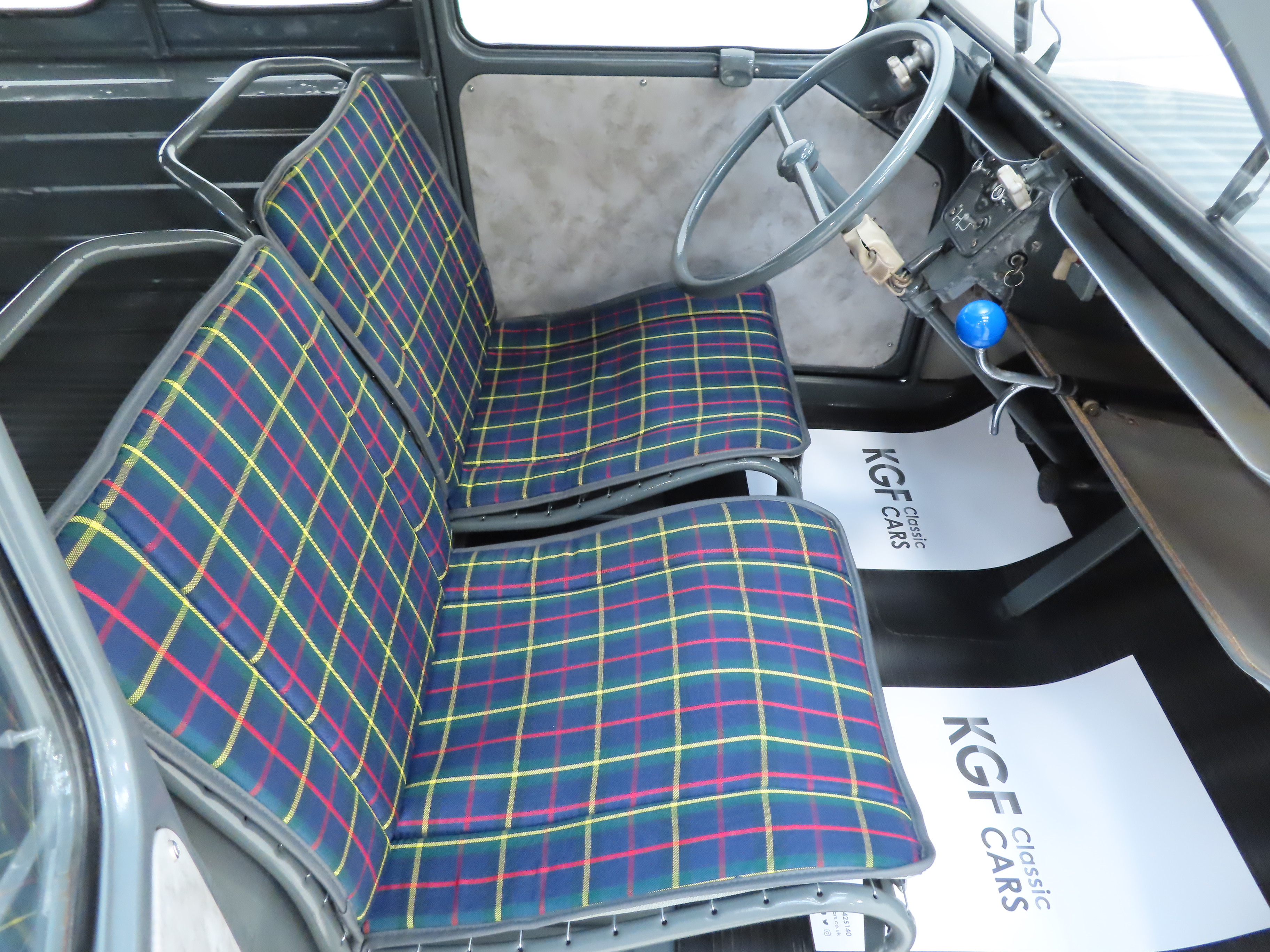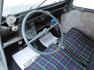 Wonderfully simplistic this 2CV AZU Fourgonnette A-Series has had a full restoration which can be seen from every angle. Correct to the original factory build, virtually every body panel bar the front wings, front doors and A-panels have the corrugated construction which was an ingenious design by Citroen to add strength to allow ultra-thin steel for weight saving purposes. A spotless underside reveals perfect structural integrity and the Grey bodywork looks fantastic with some markings, touched in scratches, and imperfections but far superior to most commercial vehicles. The obvious build methods falling far short of modern-day manufacturing excellence, verging on the hilarious, just as they rolled off the production line! The one tail light and rear reflectors resonate with a simpler motoring era designed for the masses and suicide doors enable easy access. The six side windows were a feature of many ‘Weekend’ conversions and the original GLAQauto Securite etched panes remain with new rubbers fitted. The grille logo comprising the famous chevrons and single door mirror remain intact. A truly delightful example of this Gallic icon.
