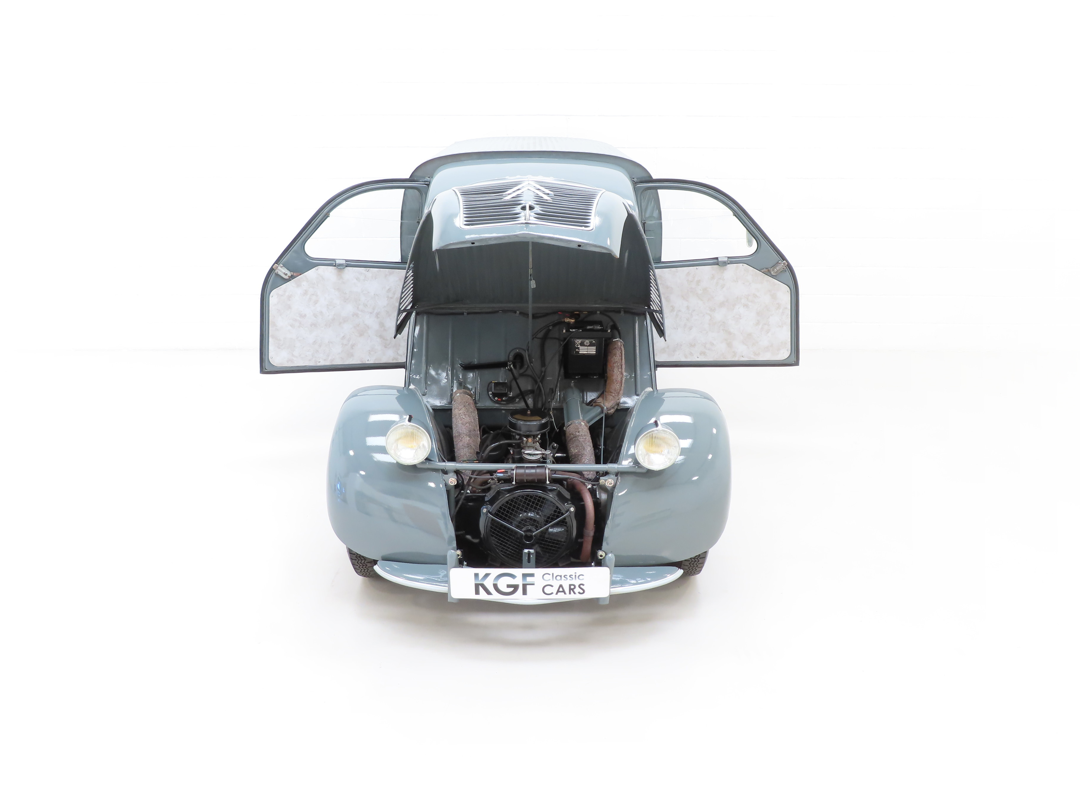 A copy of the Certificat D’Immatriculation (registration certificate) confirms first registration in the Billy Commune in the Allier Department, Central France on the 21st March 1958. The first registered owner was an Andre Fillion whose profession was very fittingly noted as a Cultivateur (Farmer)! The car remained in France for over 60 years and following a full restoration it was imported to the UK by the only UK owner, a gentleman also fittingly named Mr French! This 2CV is fully UK registered as a Historic Vehicle but prior to leaving France it was fully restored by Mark Griffin who has been a 2CV restoration specialist for over 40 years and is well known to the Citroen Car Club and 2CVGB. Highly respected and well-known within the 2CV fraternity, Mr Griffin is enthusiastically applauded by the UK’s leading Citroen Guru and Chairman of 2CVGB. Photographs of the restoration are held in the history file.