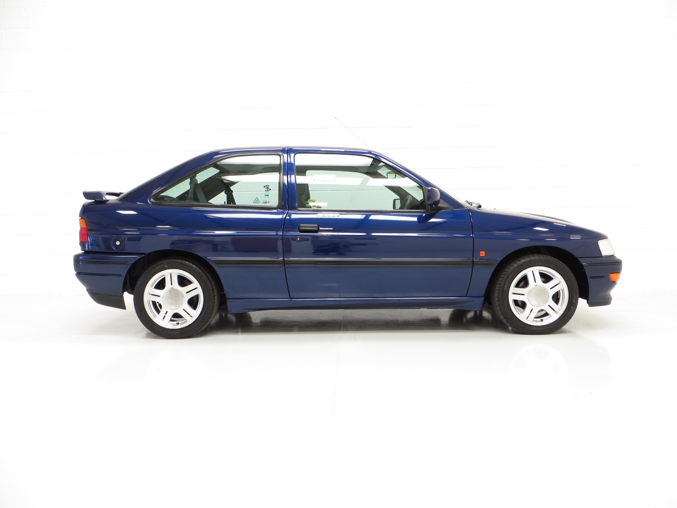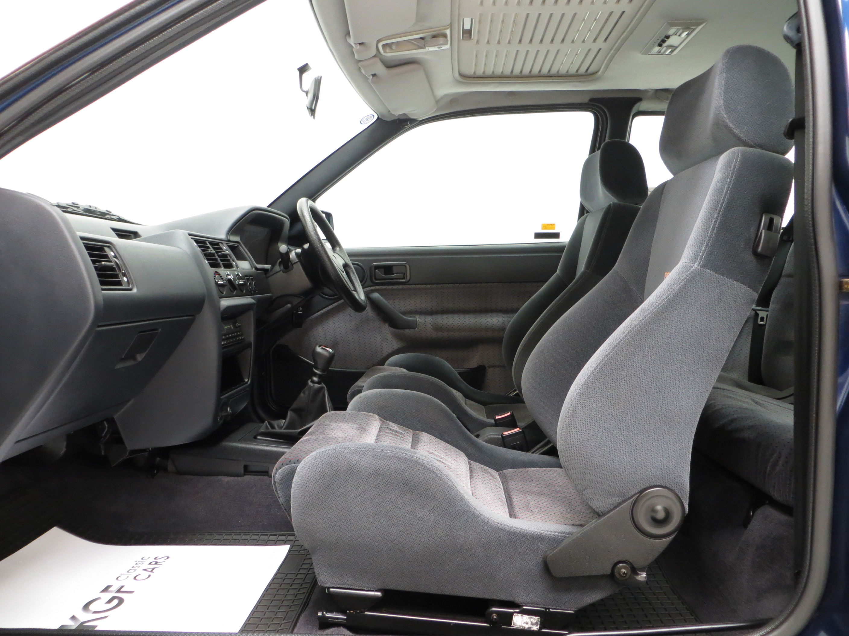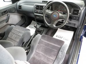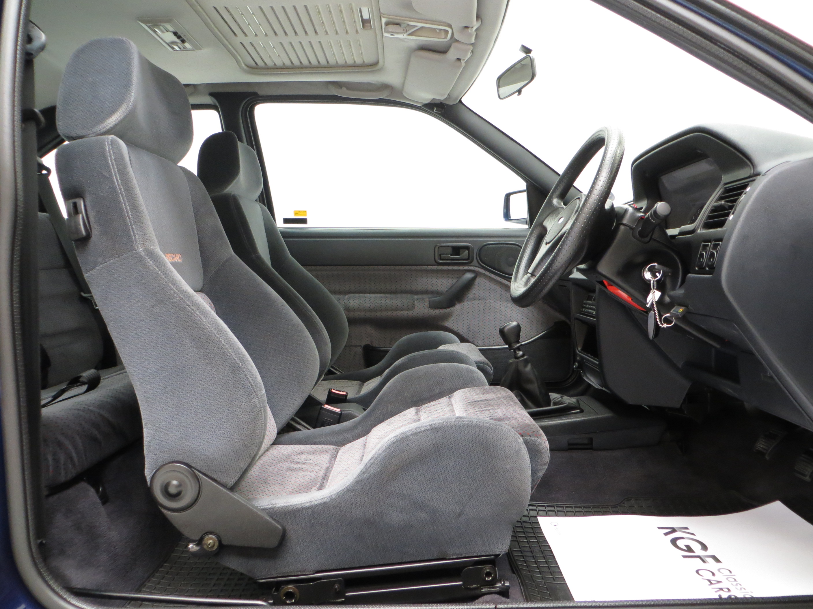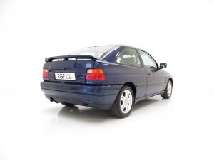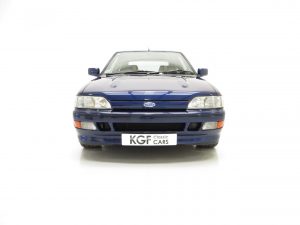 This original example is finished in optional metallic Pacifica Blue, (Code J2), which gleams thanks to indoor heated storage and very low miles. The understated looks were Fords intentions to keep away from the Boy Racer image but bonnet power bulges, revised front grille and bumper, colour coded side skirts and rear spoiler soon inform the knowledgeable. The coveted Rallye Sport badging along with all other trim is immaculate. Minor stone chips to the bonnet and a very slight roof mark prove originality and will not disappoint the perfection seeking owner. Supplying Ford dealer number plates remain fitted along with period window stickers. All apertures are spotlessly clean and the underside still displays Ford PDI colour dabs including those on the coil springs. A totally original, unspoilt and preserved example, very difficult to better.
