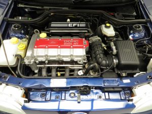 The inline 4-cylinder 2.0 DOHC 16v engine produces 150bhp and propels the car from 0-60mph in 8 secs and on to a top speed of 129mph. Both the 16-valve DOHC engine and the transverse application of the MTX 75 transmission was specifically developed for the RS2000 helping to utilise the power while offering a slick smooth gear change. The engine bay is a real testimonial to the safe keep and low mileage and would suit the show circuit. A recent major service at a Ford Main Dealer in June 2018 has been carried out.