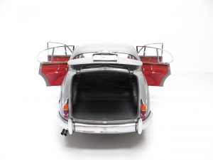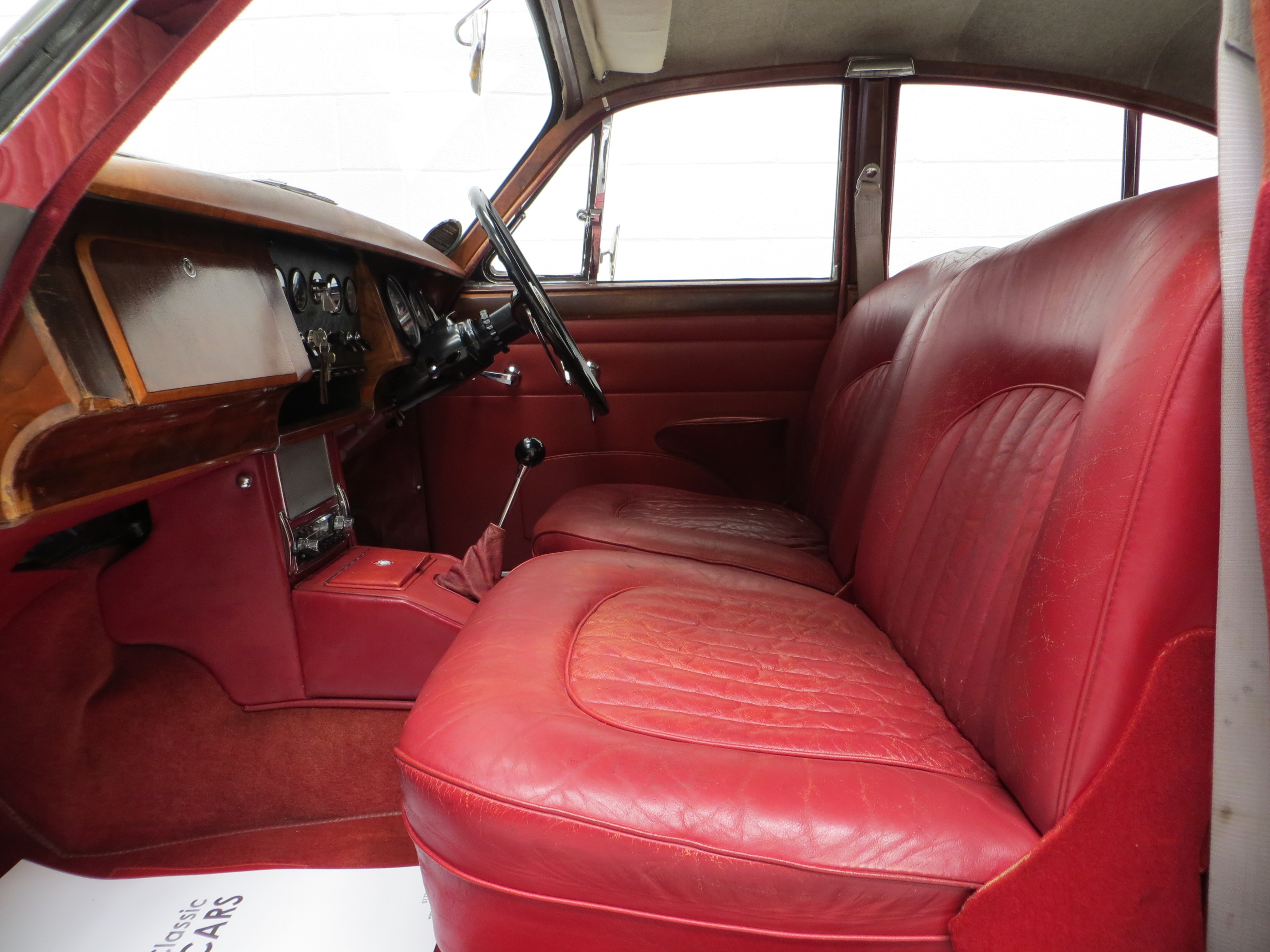 The Dunlopillo foam rubber seat cushions covered in Ambla leather hide in rich Red is well preserved with the leather fully intact and soft, and displaying only light aging. The superbly comfortable split bench front seats have the beautifully machined jaguar seat belt clasps and a sense of occasion surrounds the occupants on every journey! Luxury tufted carpets over thick felt underlay, full matching door dressings and soft velvet headlining are all intact with the headlining showing some discolouration. The handcrafted polished figured walnut instrument panel features a plethora of ornate and fully functioning Smiths gauges and toggle switches, each individually labelled with complete words, as abbreviations and symbols just won’t do! The original Bakelite steering wheel with Jaguar Growler Emblem and horn ring is a work of art. Incredibly, the windscreen mounted running in guide has remained fitted to delight originality seekers along with the chrome Lucas rear view mirror. Reminiscent of a bygone luxury motoring age, even the leather and wood scent will ignite fond nostalgia.