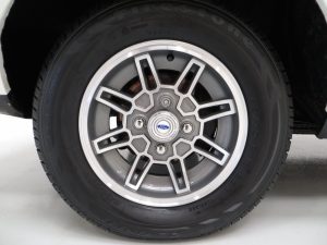 The factory fitted sports road wheels, standard on the Ghia, are in perfect order and have been diamond cut with grey inserts to stunning effect. New Firestone F-590 185/70 R13 tyres have been fitted in July 2018 and the original Pirelli Cinturato CN36 remains on the spare. The hydraulic dual-line servo assisted brakes with front discs and rear drums bring the car up straight and true.
