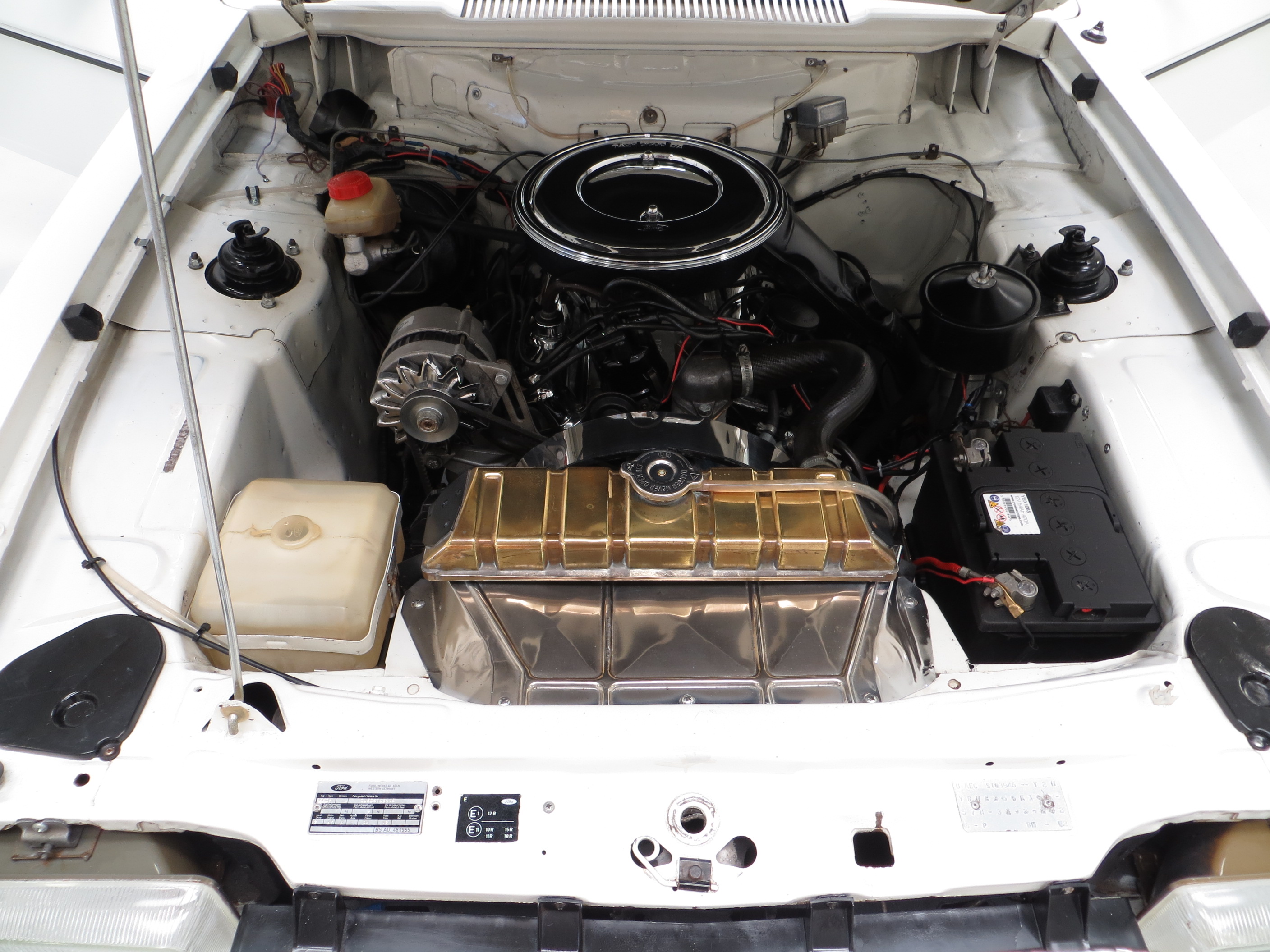 The luxury interior of this 3.0 Ghia is very clean and in fantastic order. The original Verona fabric seat coverings in Tan, (Code W2), have no tears or excess wear and matching vinyl door cards are in excellent condition. The dashboard is in perfect order, as is all switchgear and the leather covered safety padded steering wheel. All controls, functions and gauges are fully operational with exception of the radio. The original cut pile carpeting and perforated headlining remain in very good condition. The clean boot area has the original ribbed floor carpet, Ford jack and optional super rare load compartment cover. A wonderfully nostalgic and comfortable Classic Ford interior, preserved exactly is intended.