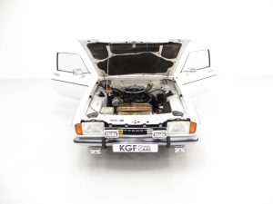 Built in December 1976 at the Cologne Plant in West Germany and registered new on 17th January 1977 by Ford Main Agents, Hooleys Garage Ltd of Derby, this Mk2 3.0 Ghia has covered a verified 48,721 miles from new. The huge and extensive history file contains masses of Ford Main Dealer and specialist invoices dating back to the late 1970’s as well as MOT certificates with accompanying checklists from the very first in 1979. The original service book, handbook and Ford accessories brochure is included. Acquired by KGF Classic Cars from a previous keeper who also had a Mk1 Escort RS2000, Chevette HSR and Talbot Sunbeam Lotus and subsequently sold very quickly to Mr Verrell. Mr Verrell honoured contacting us first when deciding to sell the car due to the desire of building a Porsche collection and we jumped at the chance to own this special car again! This R registered example has a memorable number plate with ‘RRR’ prefix.