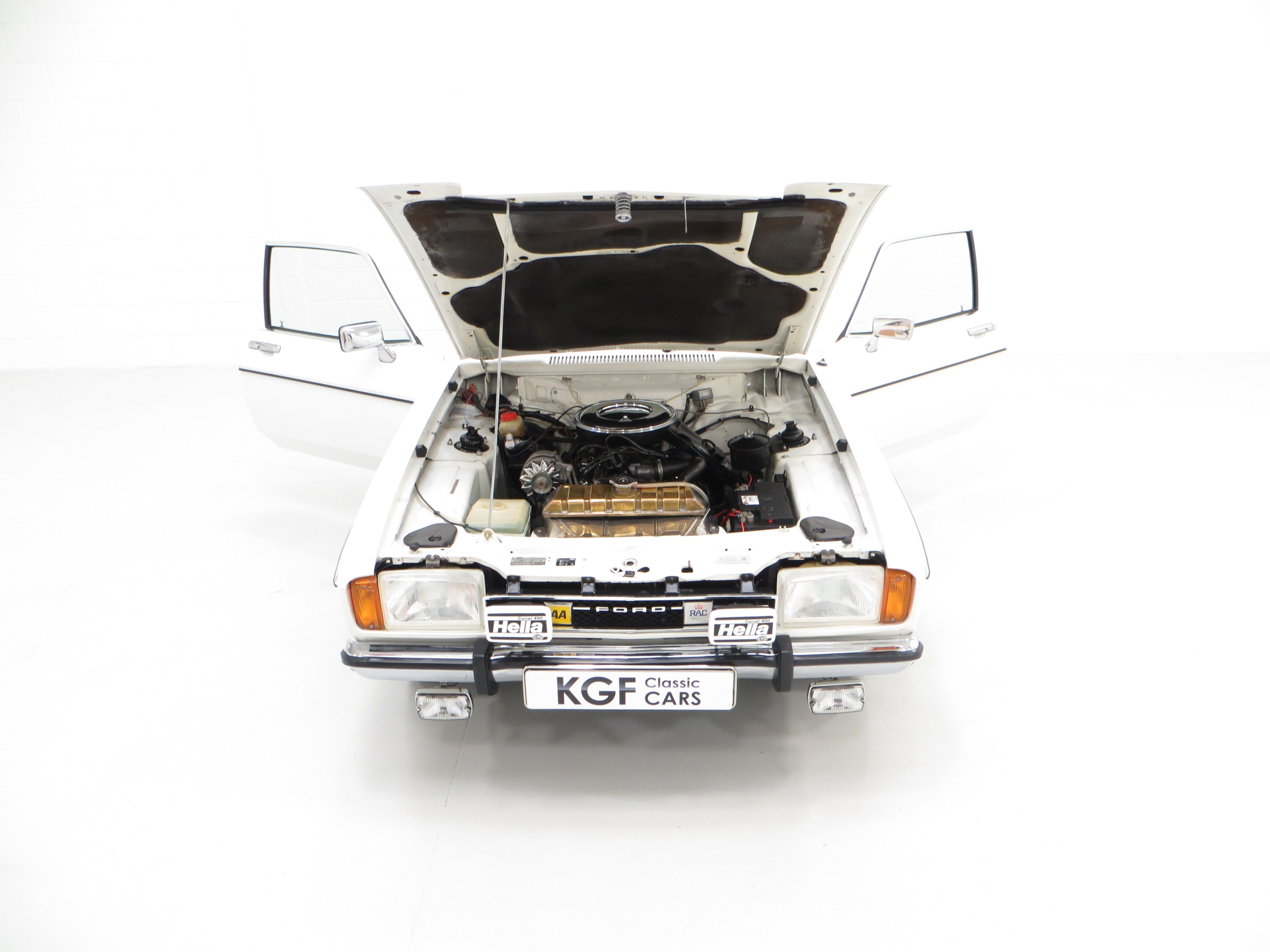 In 3.0L Ghia guise, this was the Mk2 Capri to have and the ultimate ‘car you always promised yourself’. This superb example is finished in the original colour of Diamond White (Code BM), which boasts a bright uniform finish with only light markings visible. All original panels are straight and display uniform shut lines, and the underside is free from excess applied underseal to allow easy inspection of the structural integrity. The trim sections, brightwork and Ghia finishing’s are in superb order as is the correct pre blue oval ‘FORD’ badging to the grille and boot lid and 3.0 and Ghia wing badges. This vinyl roof is in superb order and shows no lifting or damage whatsoever. This show-worthy example will delight any enthusiast seeking a top of the range Mk2 Capri.