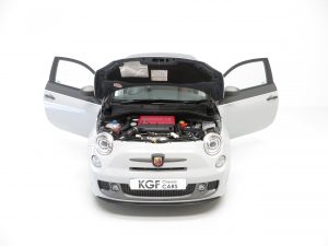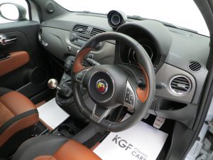 Make no mistake, this is not your usual chirpy Fiat 500! The 595 Competizione 180HP is a ferocious race-bred and track inspired machine, a creation by the legendary Abarth tuning arm of Fiat which was producing Fiat performance tuning kits a decade before even the original 595 was launched at the 1963 Turin Motor Show. The 500C edition is finished in factory optional Bi-Colour Grigio Scuro/Grigio Chiaro, (Dark Grey/Clear Grey – Code VR.618). Having covered just 9,975 miles from new, this late 2015 example is pristine with only a small stone chip to the bonnet edge worthy of mention. The soft top is perfect in both operation and condition. All light lenses are crystal clear and the carbon fibre trim and iconic red/yellow scorpion Abarth badging is just one of many hints towards the racing pedigree of this exciting Fiat. Developed on the race track, built for the road, this has plenty of zest for the avid petrolhead!