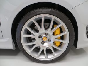 Factory optional Formula Magnesium finish alloy wheels are a work of art and feature yellow scorpion centre caps to match the huge yellow Brembo callipers prominently visible through the spoke apertures. The front nearside rim has some light scratches to the outer edge. The factory ultra-low profile Michelin Pilot Sport 3 205/40 ZR17 have masses of tread remaining. The race-bred braking system features oversized front fixed Brembo 4-piston callipers, light weight perforated and ventilated 305mm front discs and 240mm rear discs to offer ferocious braking power.