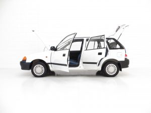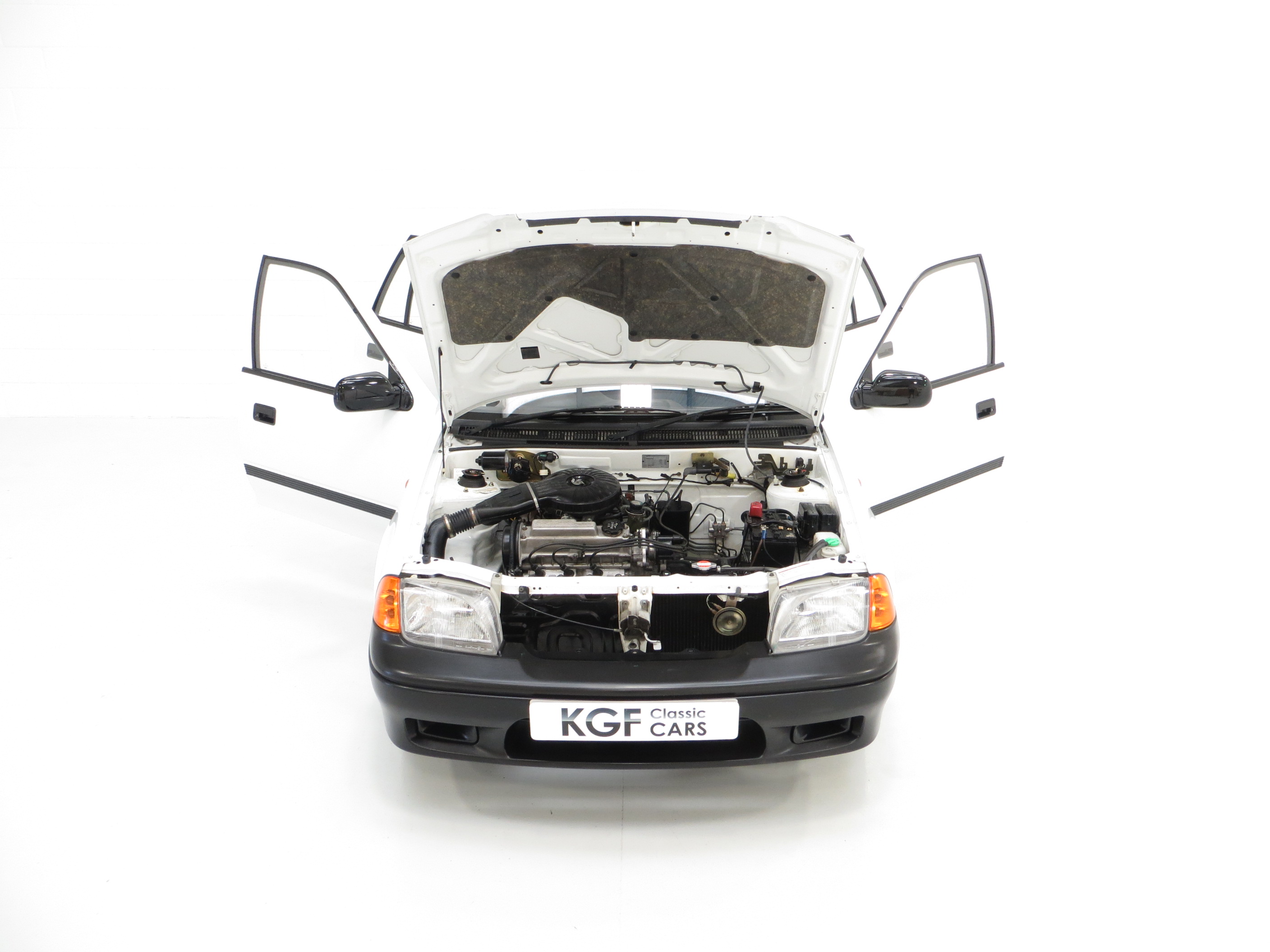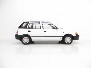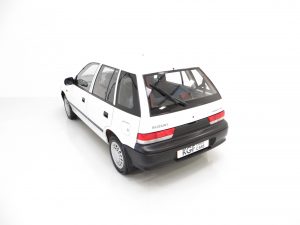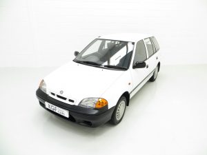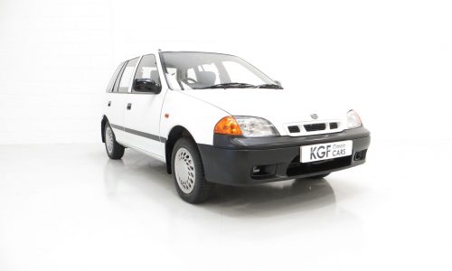 This delightfully humble Suzuki Swift has covered an incredibly low 9,427 miles from new in the hands of just one owner! The factory original Superior White paintwork, (Code 26U), is preserved in excellent order to boast a bright uniform shine, thanks to strict garage storage from new and the unusually low miles covered. All factory panels are straight and free from damage, and only light markings can be seen including a touched in scratch to the boot lid and small mark to the driver’s door edge being worthy of mention. All trim sections are fully intact and the bumpers are excellent with no scuffs. The supplying dealer number plates remain fitted. A rare surviving example preserved in incredible condition.