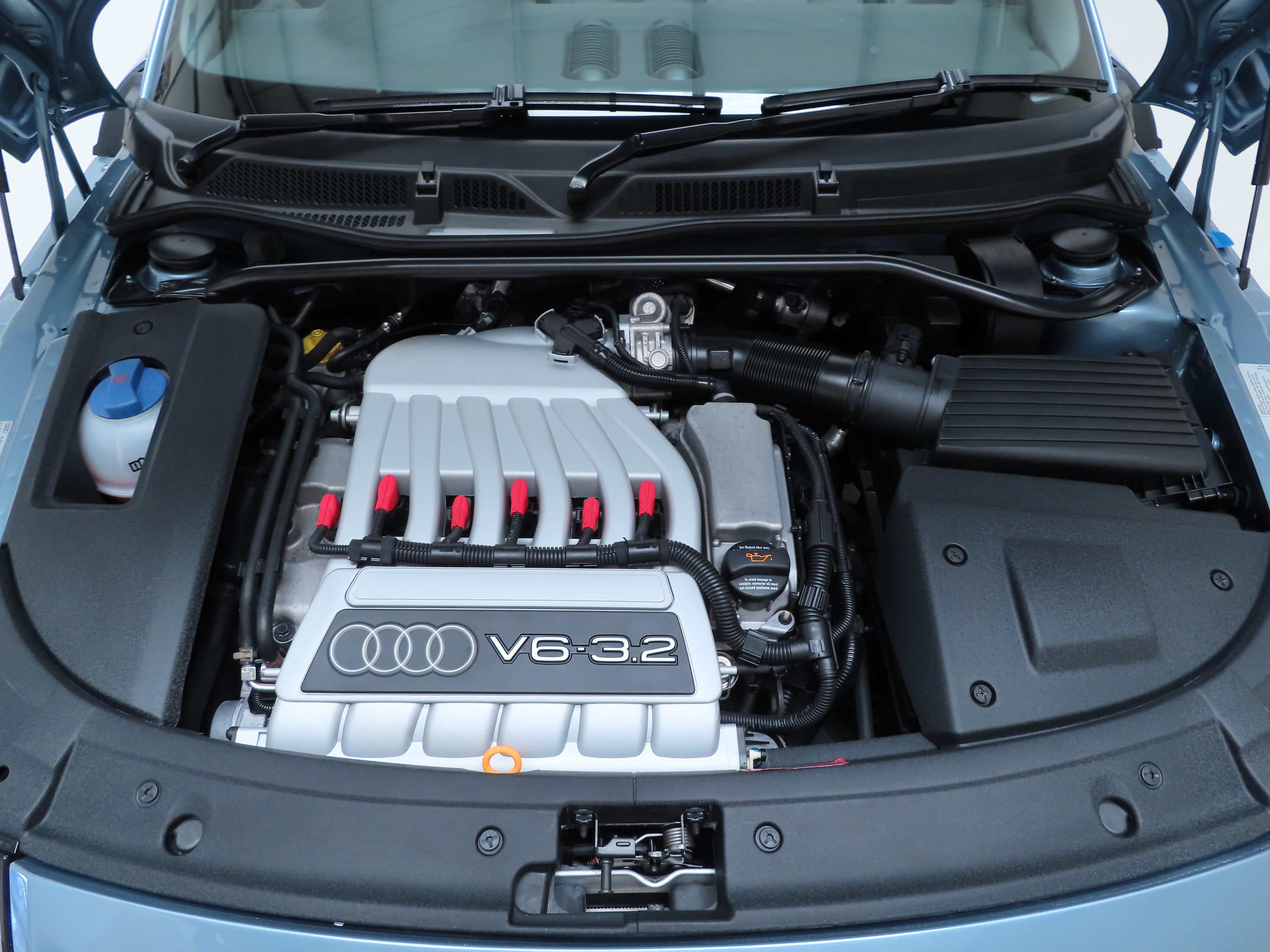 The chain driven 3.2 V6 model was the most powerful and fastest roadgoing TT behind the Quattro Sport producing 246bhp with silky smooth performance to achieve an electronically limited top speed of 155mph and 0-62mph in just 6.7 seconds. An exhilarating yet stable drive through the legendary Quattro permanent four-wheel drive system is complimented by the driver choice short-throw 6-speed gearbox. The engine bay is spotlessly clean and displays factory plates, stickers and labels.