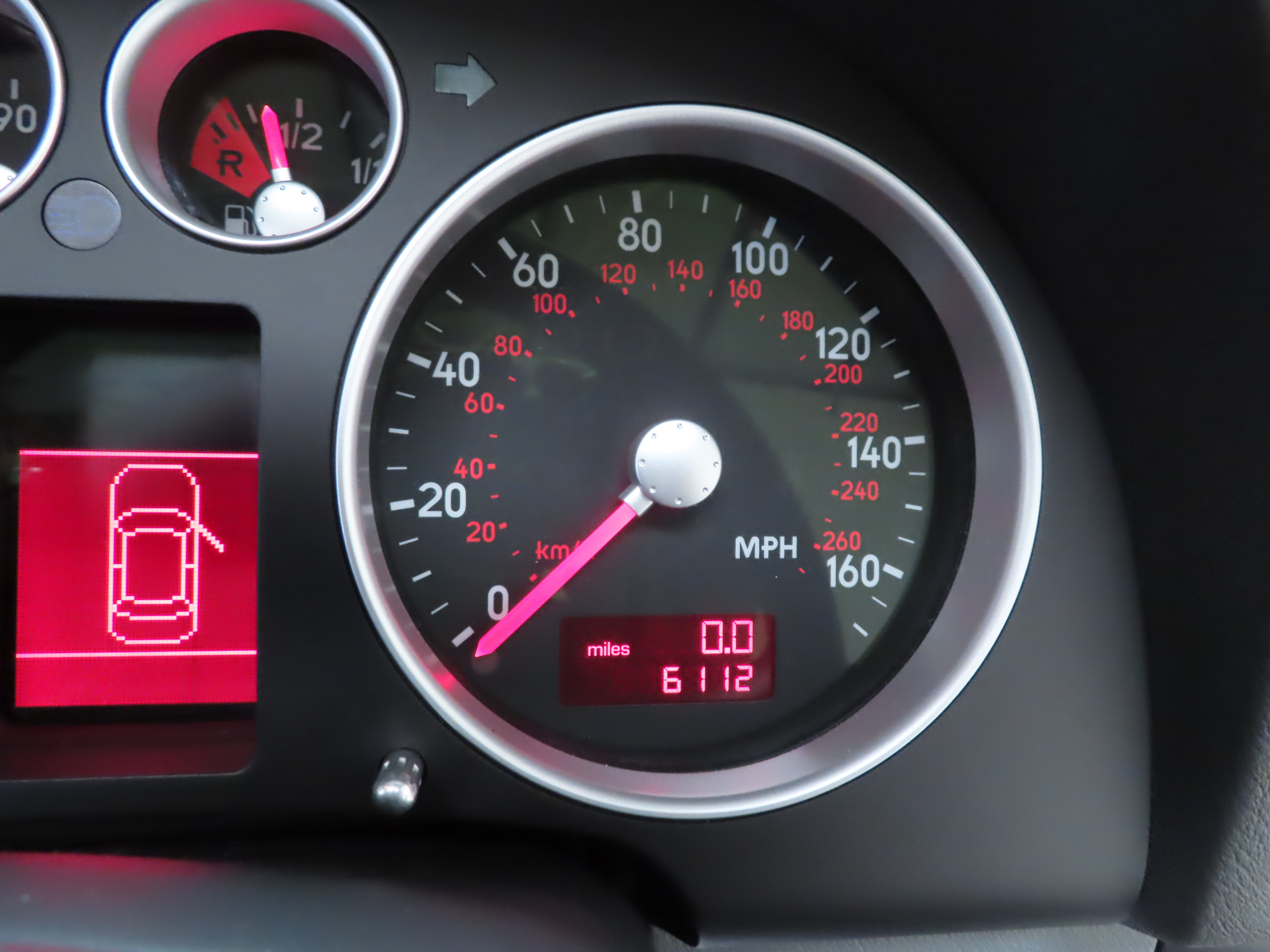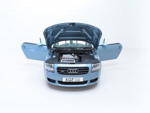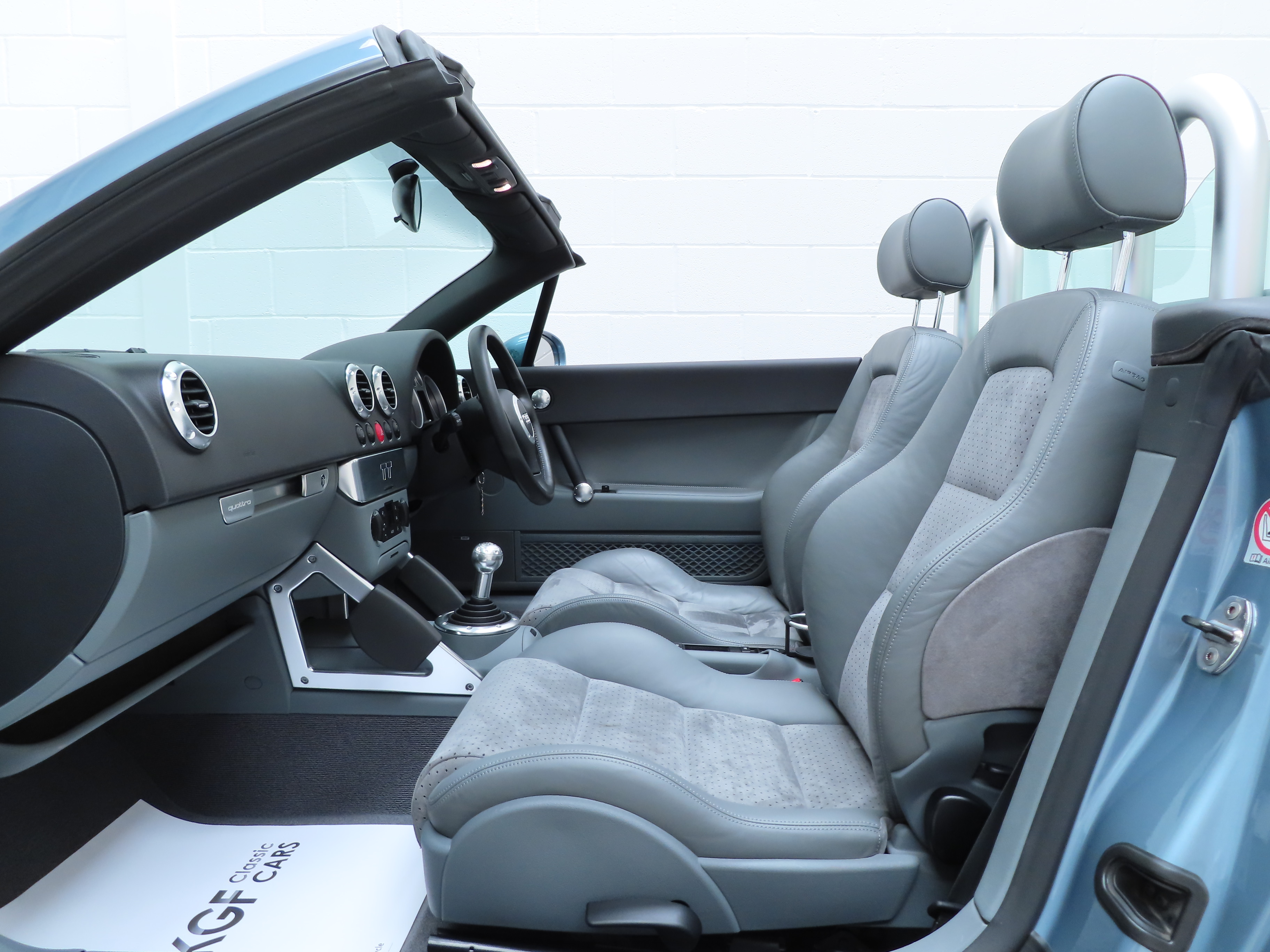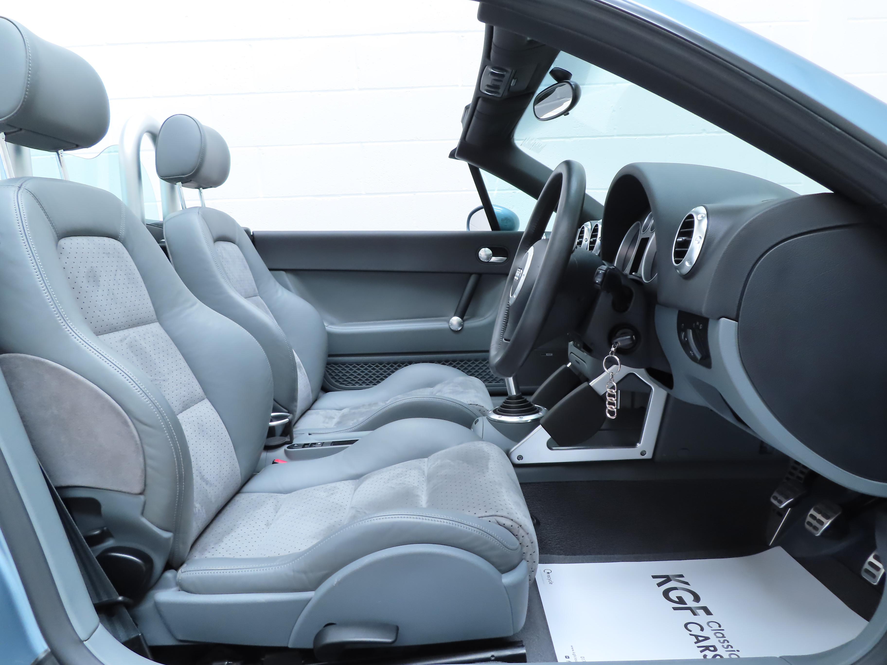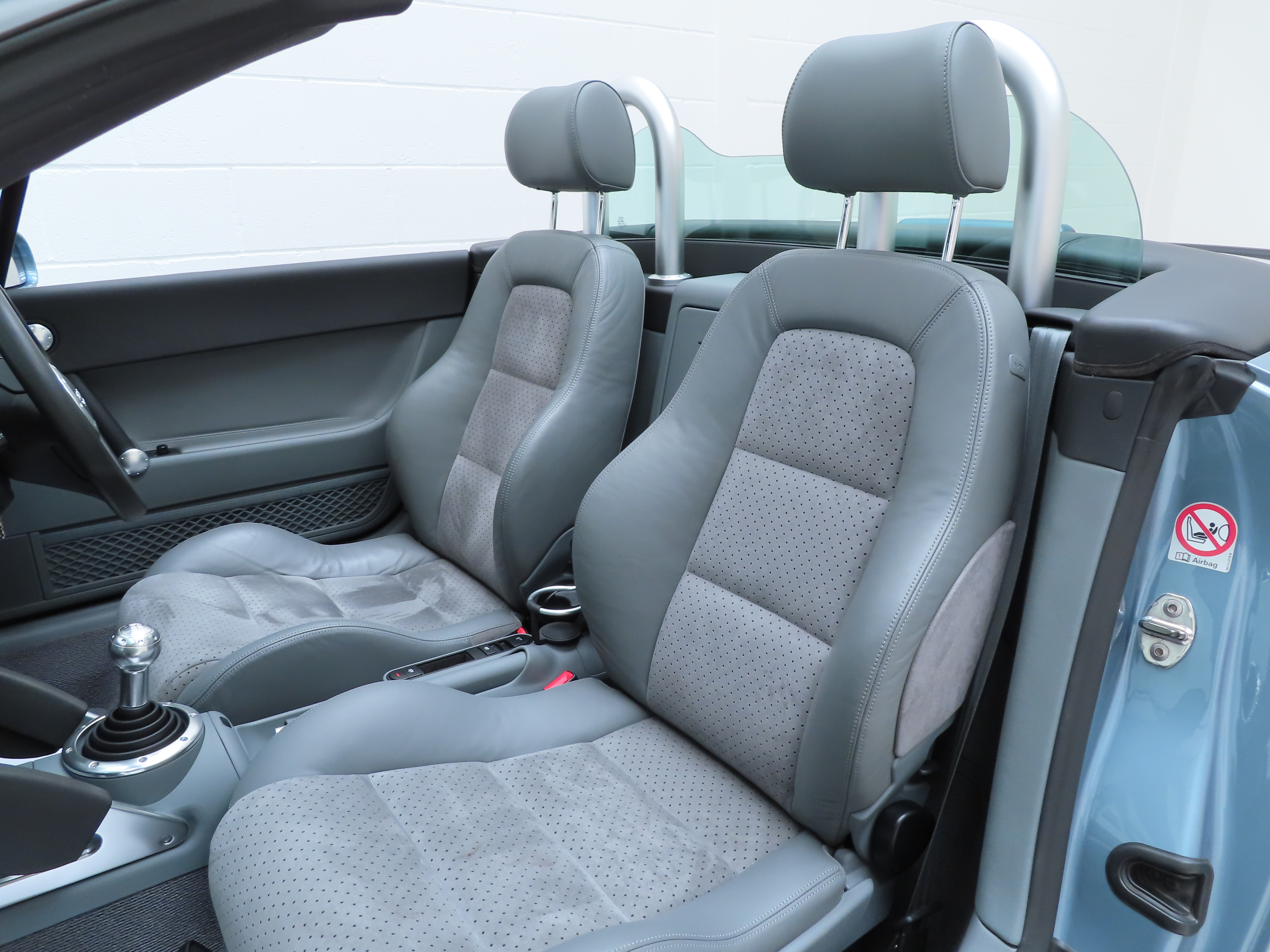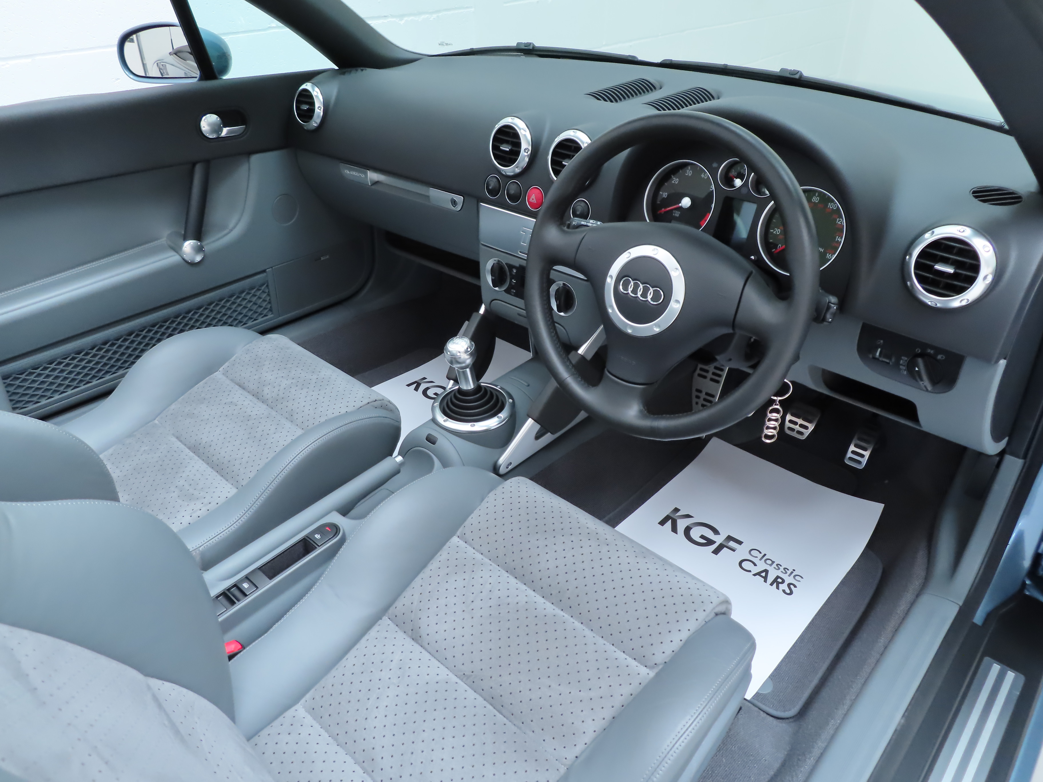 This twin seater Roadster is the perfect combination of sports car enjoyment but with no-compromise Audi build quality. The expensive factory optional Grey Leather/Alcantara upholstery, (Code JT), is beautifully clean with firmness retained and no bobbling to the Alcantara. The quality carpets are pristine having been protected from new by genuine Audi floor mats plus an additional set of over mats. All aluminium element trim pieces, controls and functions are as new and operate perfectly including the heated seats and ice-cold air conditioning. The Driver Information System (DIS) display is perfectly clear with all pixels intact, quite rare for the Mk1 TT. Both the factory optional Audi Concert stereo with BOSE sound system provide deep, clear and crisp audio pleasure. An immaculate and unspoilt interior.