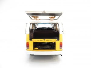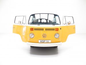 The factory fitted 2.0 Type 4 engine as fitted to this example is the correct carburettor version as denoted by the CJ prefix to the engine number. Producing 69bhp at 4200rpm and 143Nm torque at 2800rpm, this more powerful unit is perfectly suited to the T2 and even now is highly regarded for its impressive capabilities. The engine fires into life effortlessly and motorway cruising is surprisingly refined and far superior compared to smaller engine models. The engine compartment is clean and there is a generous yet carefully applied layer of protective wax. Reliable usage is a given due to fastidious maintenance using correct grade oils and genuine and specialist supplier parts. The fully synchronized 4-speed gearbox operates very well.