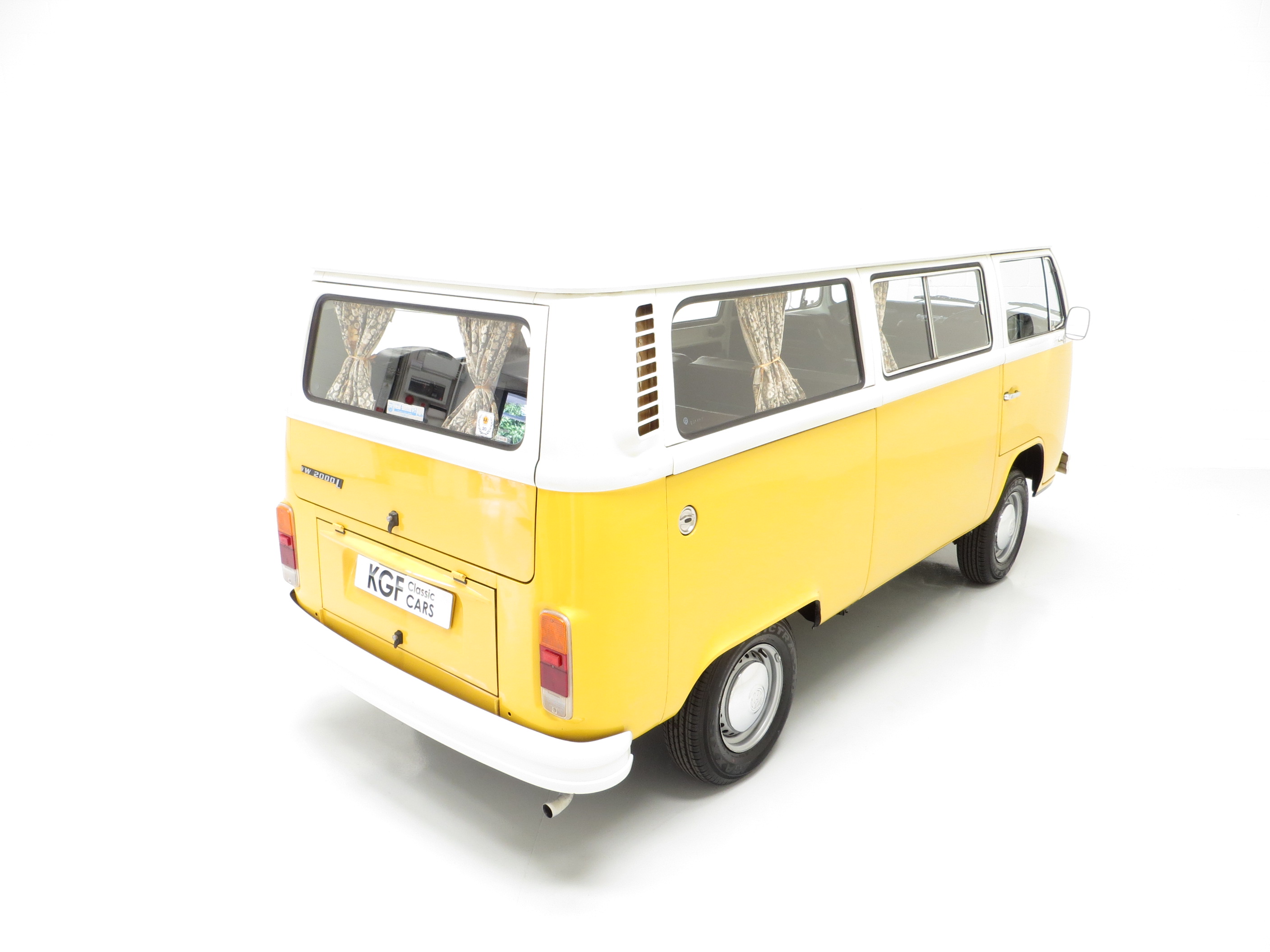 This absolutely wonderful Kombi Microbus is a very rare vehicle having avoided the fate of many camper conversions. Not only has this Kombi remained as intended, it has remained largely original and well preserved. The original colour of Sunburst Yellow/Clifton White, (Code 234S), is bright and looks superb. Evidence of remedial paintwork and light age-related markings can be seen but do not detract from the overall impressive appearance. The white painted bumpers are in excellent order and all trim sections, rubbers, lights and badges are fully intact. Incredibly the sticker for the supplying VW/Audi Main Dealer in South Africa remains fitted in the rear screen! Having spent the majority of its life in dry climates with salt free roads, the underside is amazingly well preserved and factory panels are straight and free from repair work. A very genuine Microbus, one for continued preservation.