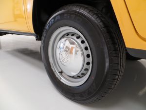 Correct steel rims with L specification VW mirror finish original chrome hubcaps show only light aging and matching quality Maxxis Victra 510 185/80 R14 tyres are virtually unused having been fitted brand new in 2015. A dual hydraulic brake system operating front discs operate exactly as Volkswagen intended.