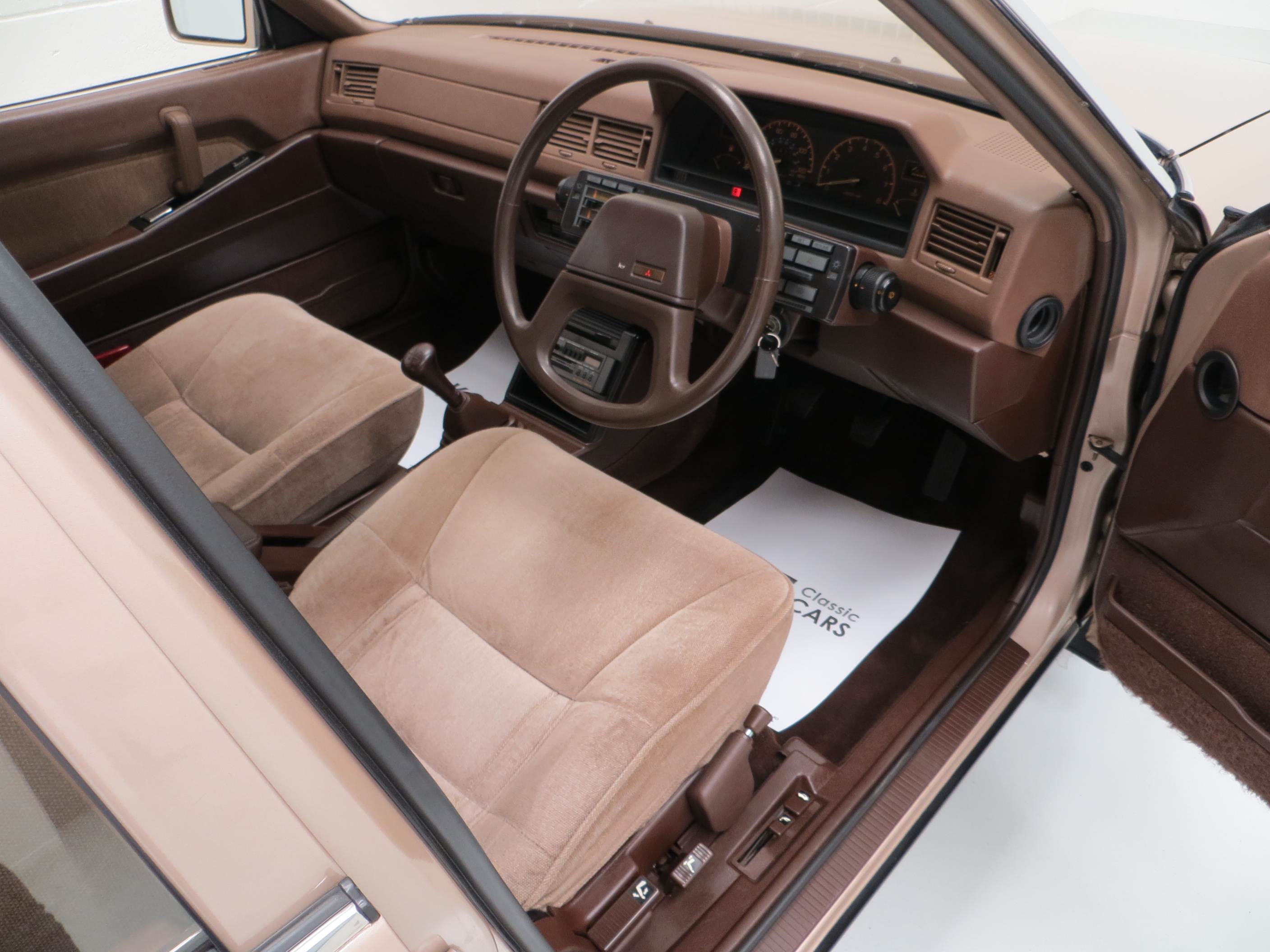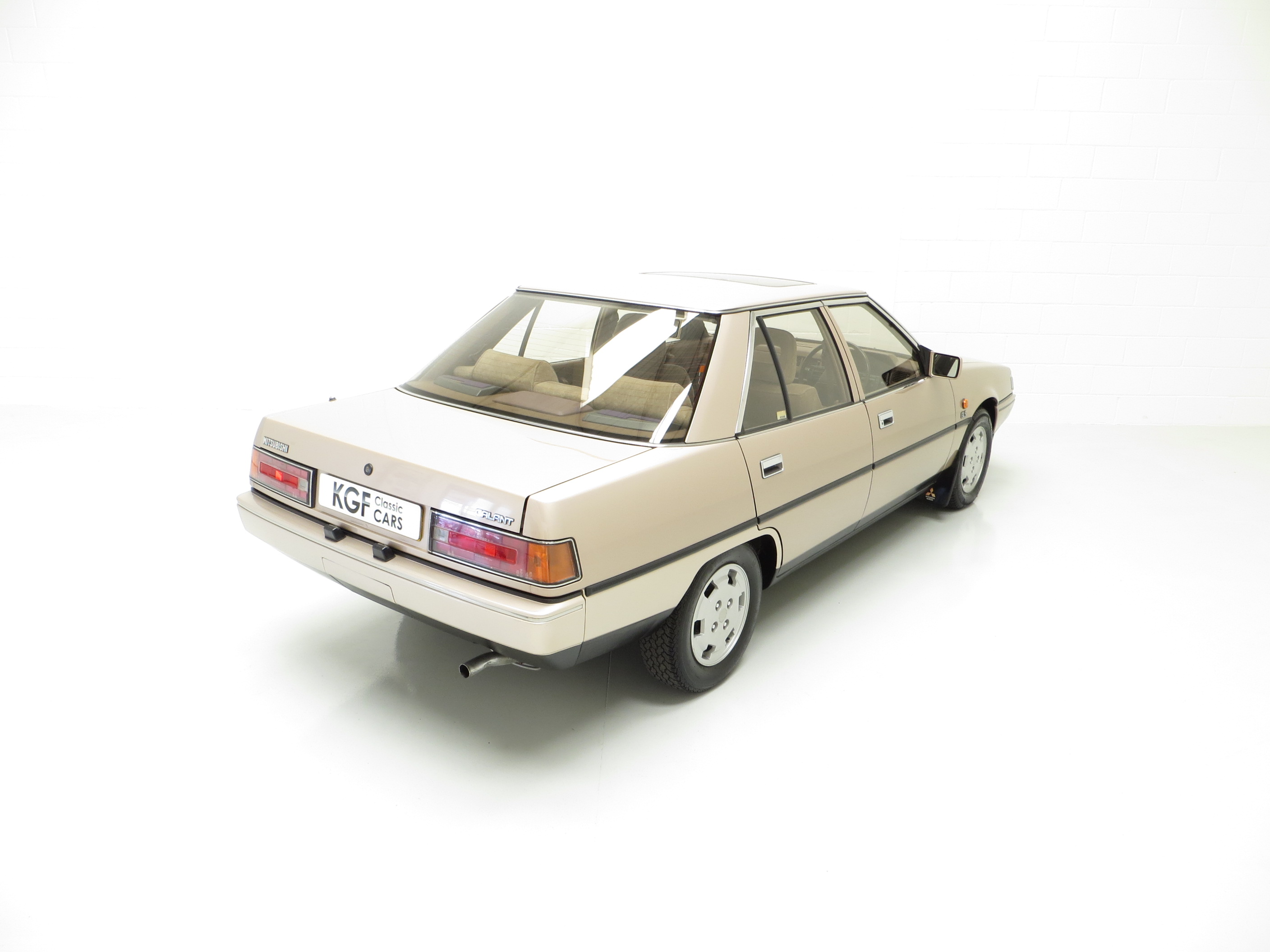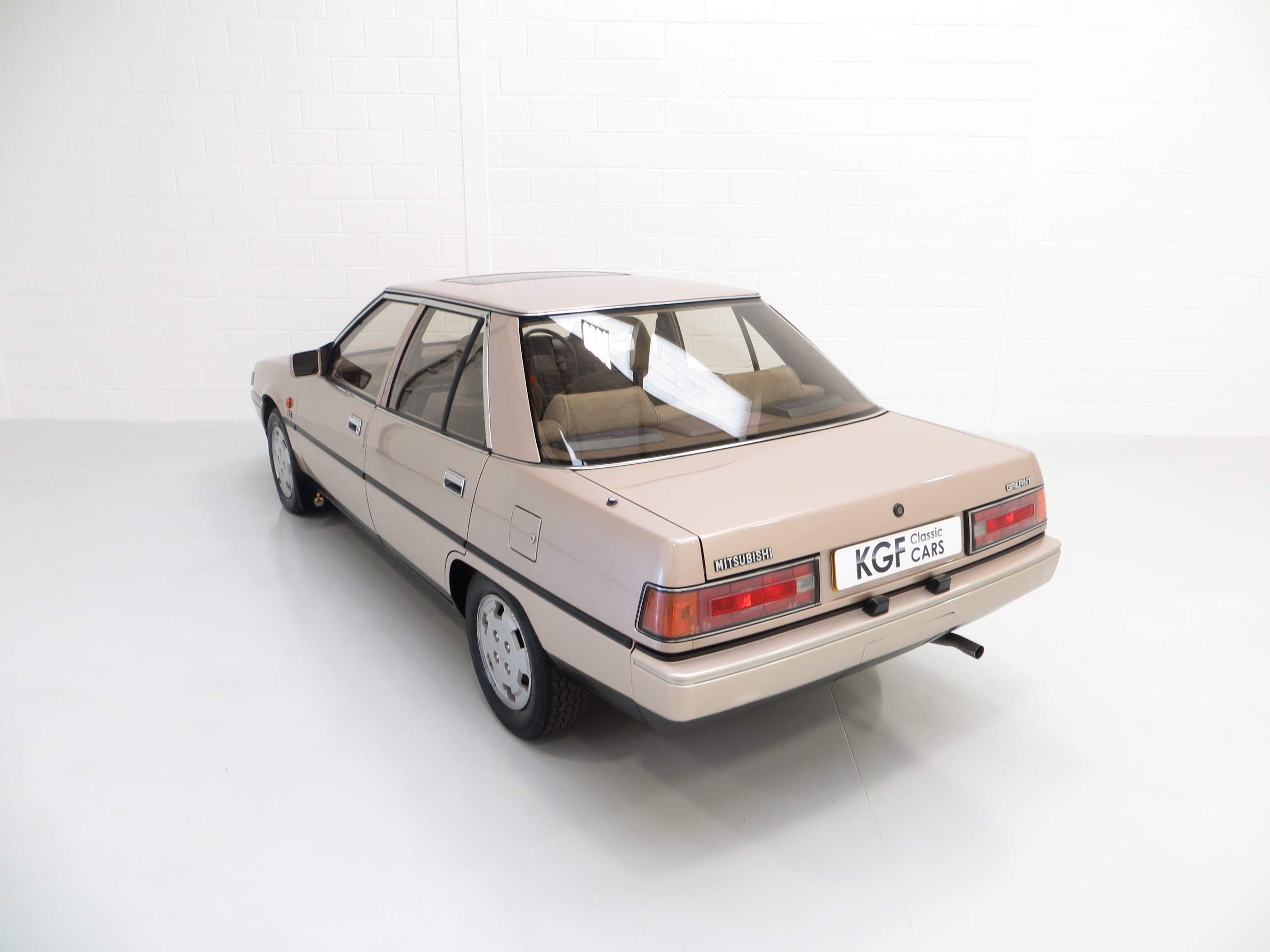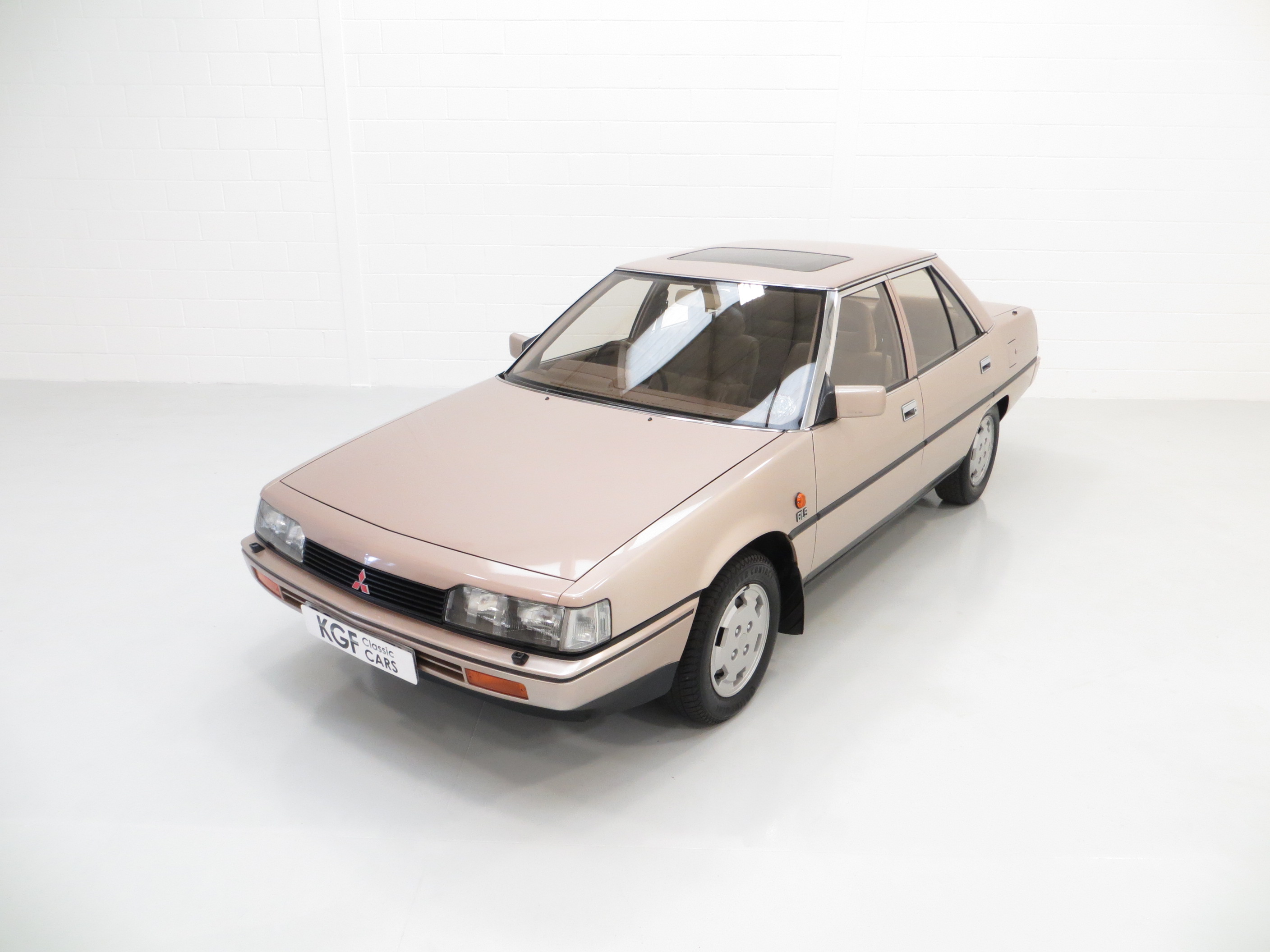 This quirky Mitsubishi Galant is the fifth generation of its luxury family car, a rare sight on UK roads even in the 1980’s. Finished in Silver Beige Metallic, (Code S28), this one owner from new example has covered just 55,098 miles from new. The paintwork boasts a bright polished finish with markings and remedial paintwork evident upon inspection. Having been strictly stored in a heated garage throughout its entire life, the structural integrity of the underside is in excellent order, as are all factory panels. Trim sections are fully intact and preserved having avoided UV and moisture damage associated with outside storage. The supplying main dealer number plates and tax disc holder remain fitted. This GLS model was the top of the range for luxury, outdone only by the sporting choice of the 2000 Turbo, and represents a virtually forgotten slice of Mitsubishi history.