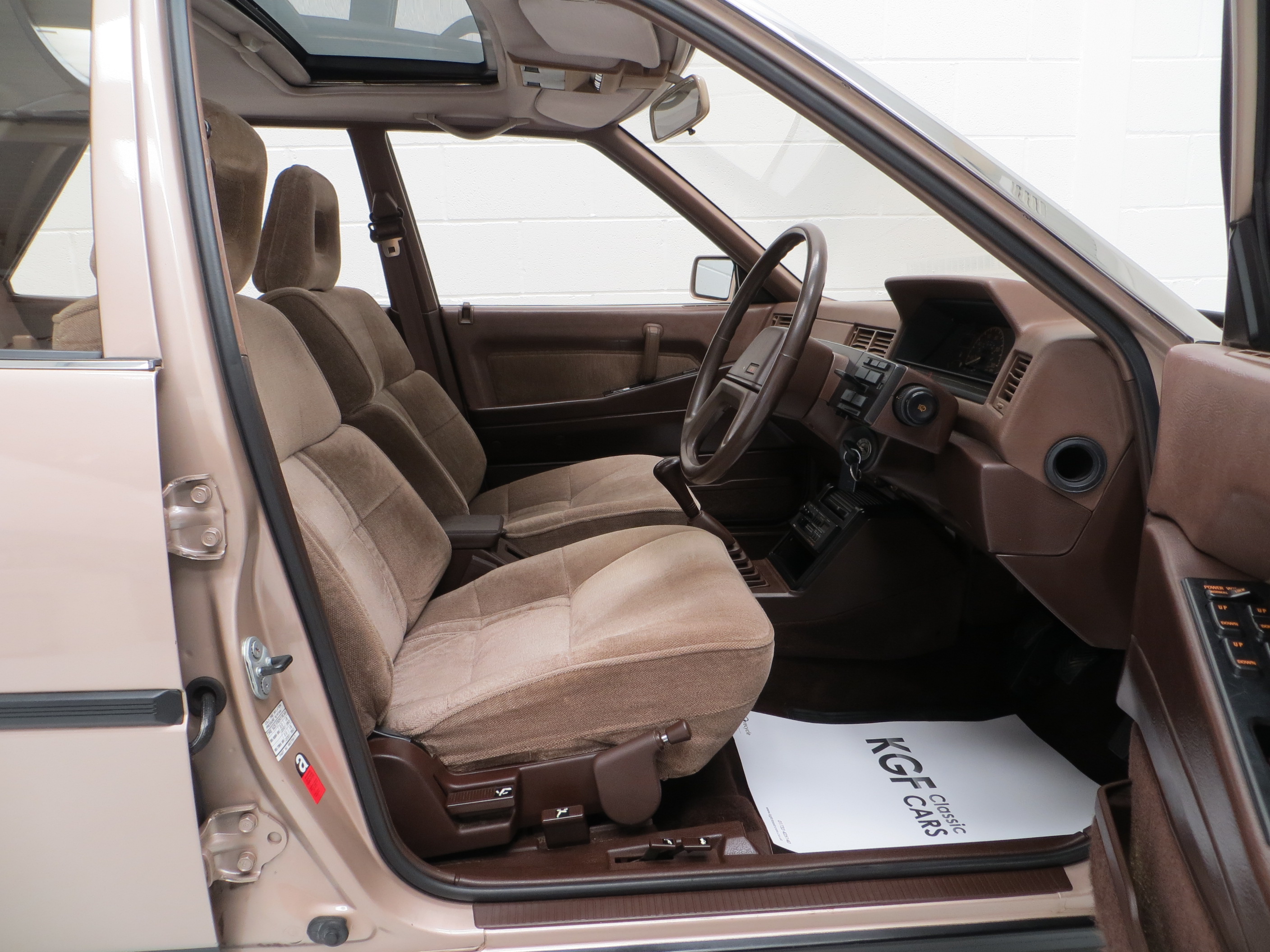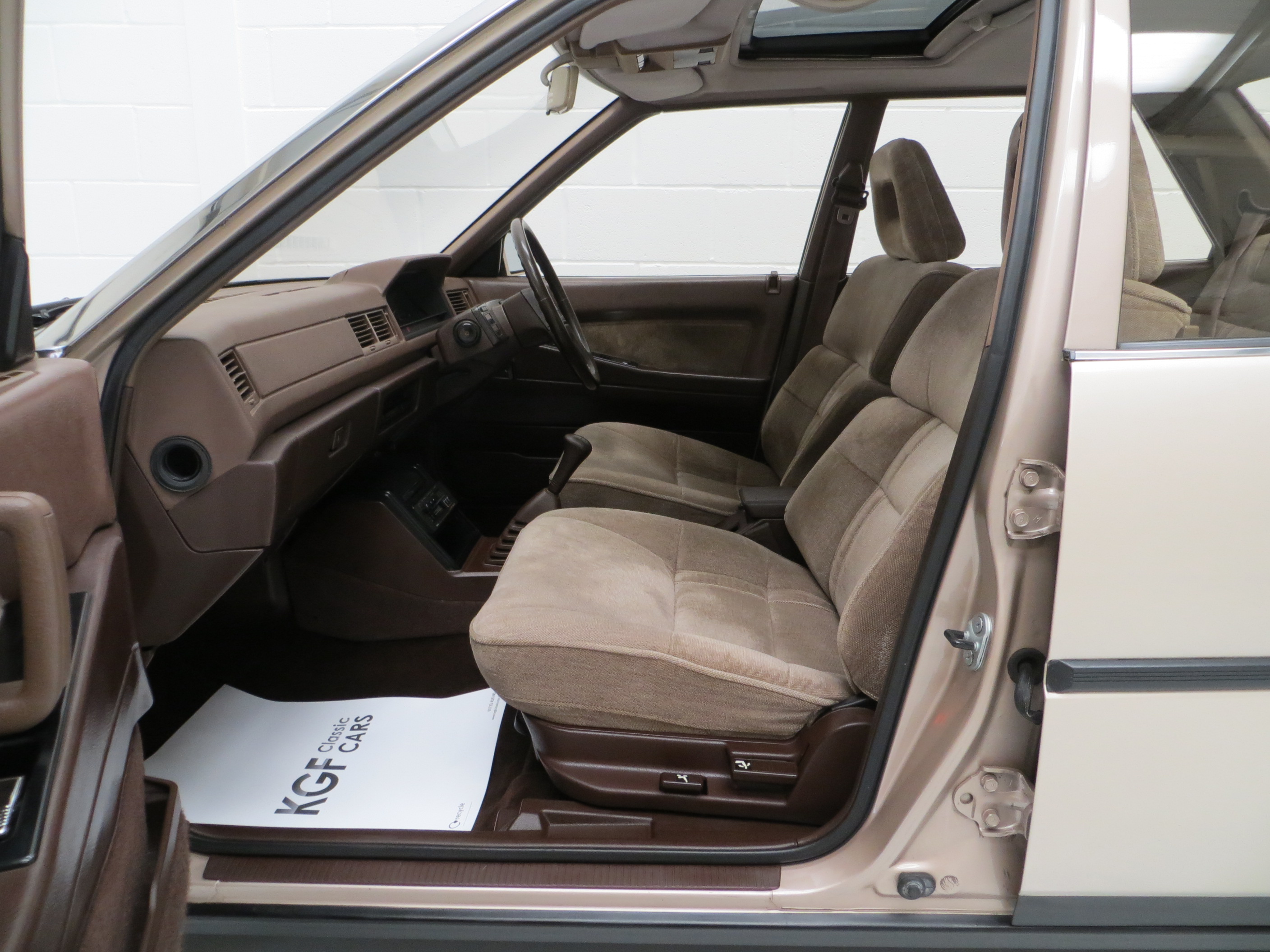 Supremely plush, indulgent and wonderfully 1980’s! This luxurious GLS model is further enhanced with the factory 2000GLS Diamond Option Pack which added to the already impressive specification. The original sumptuous deep cushioned seats in Mid Beige, (Code 42F), are virtually as new with no sagging, fading or damage. Contrasting dark brown carpets are pristine as are the two tone plush door cards. A wonderfully 80’s feature of this high-end model is the quirky wing column control centre which straddles the steering column and offers fingertips control of all driver functions, including the fully operational cruise control! Absolutely all equipment works perfectly, including the Philips DC553 stereo cassette with electric aerial. An interior that epitomises the 1980’s technology boom, a delicious slice of nostalgia!
