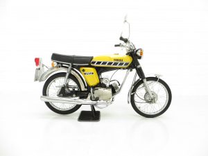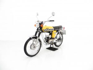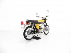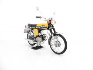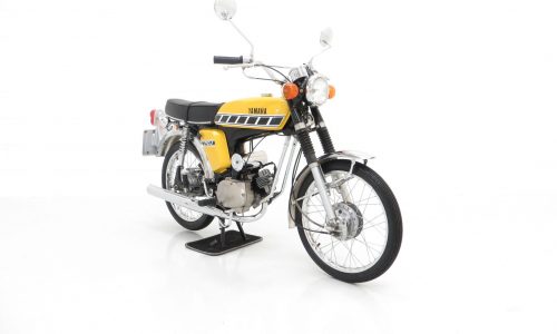 Launched in the UK in 1973, the Yamaha FS1-E (E to denote England) was seen as the saviour of many 16-year-old who felt cruelly curtailed by a change in licencing legislation introduced in 1973. Nobody could have predicted the success to follow with the FS1-E quickly becoming Yamaha’s top selling bike in the UK within three months of launch, and the affectionate nickname ‘Fizzy’ becoming firmly adopted! Registered new on the 8th July 1977, this UK example is a matching numbers bike with identification markers clearly visible, legible and un-tampered. An iconic model in 2-stroke moped history, the Yamaha FS1 ‘Fizzy’ series was born from and ironically eventually discontinued following changes in legislation, but not before securing legendary status throughout the 1970’s and ever since. An original Yamaha FS1 sales brochure is even kept in the history file! This fully operational and useable bike is equally impressive as a show piece. A rare opportunity to acquire this Yamaha FS1-E where inspection and trial will not disappoint.