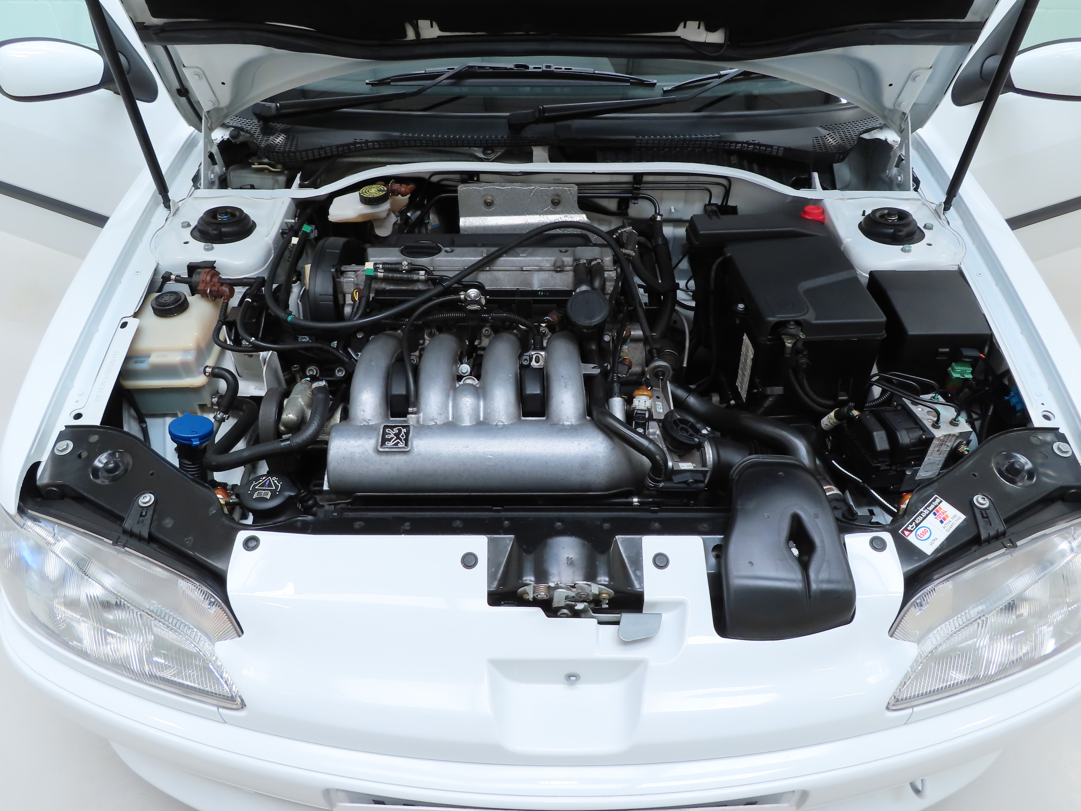 It may have the allure but it really is the performance that is most impressive about the Peugeot 306 Rallye. The Gruff metallic exhaust howl from the XU 2.0 litre engine develops 167bhp, enough to sprint from 0-60mph in 7.8 seconds and on to a top speed of 137mph. The engine bay presents fabulously with every sticker, label and stamp factory correct. The factory oil filter is still wrapped in its paper wrapper but the car has had oil changes and a cambelt change. The 6-speed transmission and clutch action works precisely.