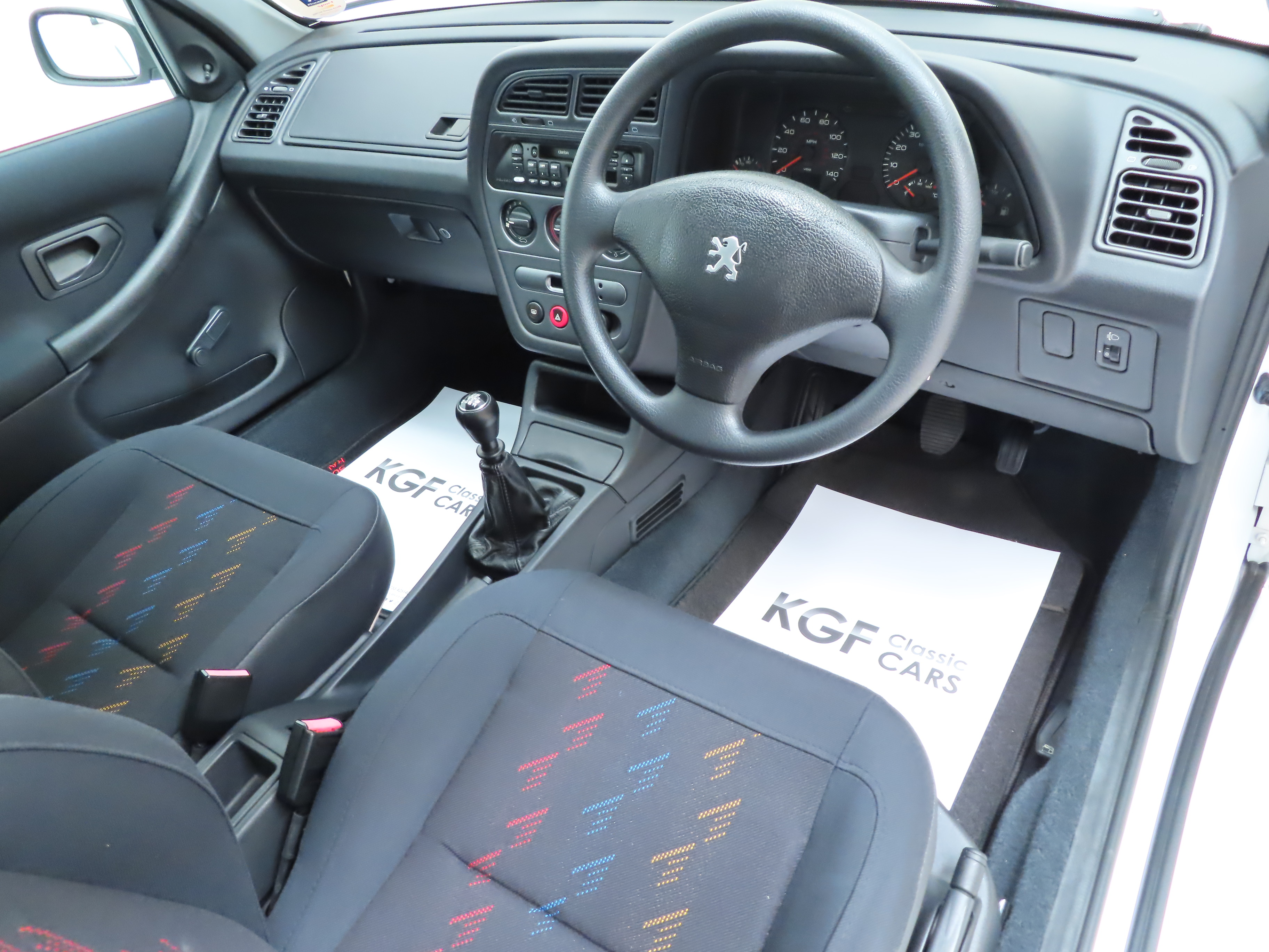 Every inch a drivers, car this limited edition Peugeot 306 Rallye is finished in solid Bianca White and the factory applied paint throughout is impeccable with a stunning glossy finish. Only 200 were finished in this striking colour making the deliciously retro Rallye decals contrast vibrantly, especially after being replaced due to slight fading with genuine items from Peugeot, such was the fastidious nature of the former enthusiast keeper. All green tint Sekurit glass has the Peugeot logo and along with all other trim, light clusters and rubbers are in perfect condition. Commensurate with the astonishingly low 309 miles covered the underside and wheel arch apertures are remarkable and worthy of any showmanship. A delectably de-frilled, lighter and rarer version of the 306 GTi-6 this Rallye is very special.