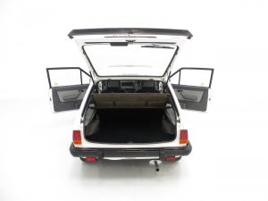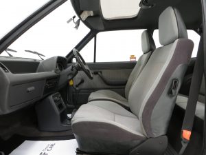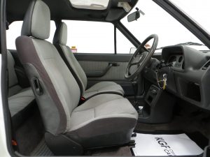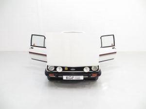 The interior in this fabulous example remains in beautiful untouched condition, even down to the working Ford RST21P stereo cassette and original Ford rubber floor mats. The ‘Storm’ and Crushed Velour interior in Shark Grey, (Code KW), is clean, fully intact and shows only light furring to the driver’s seat bolster and slight stretched fabric. The door cards and Grey Mylar sidewall and rear quarter finishers are superb, and the cool-black perforated headlining is tight with just one small hole. The red laser line around the instrument binnacle is vibrant and the soft finish dashboard is perfect. The unworn steering wheel and gear knob have prominent veins. All switchgear is functional and the original trimmed parcel shelf is pin-straight and complete with the correct rubber hangers. The vinyl sunroof bag has been kept, an irreplaceable and exceptionally rare item. A delightfully period unspoilt interior, reminiscent of the 1980’s hot hatch phenomenon.