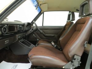 Twin Recaro high-back recliners with the fish-net headrests are in very good condition finished in Chocolate Beta plus fabric. Matching cut pile carpets and fully trimmed door panels are in excellent condition. The fascia and undamaged padded dash top houses fully functional gauges and rocker switches including the Smiths Quartz clock and heater fan on both speed settings. The luggage compartment has a cut pile carpet extending over the spare wheel and retaining rubber strap. The colour code sticker is attached to the rear panel although faded and the Ford jack in the hessian bag is present along with a wheel brace. A classic Ford RS interior.