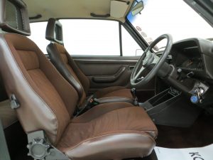 Polyurethane front end incorporating four Cibie quartz halogen headlamps, front air dam, rubberised tail spoiler, twin bodyside coachline, RS2000 decals, black door mirrors, laminated windscreen, hazard warning flashers, heated rear window, separate fuel, water temperature and oil pressure gauges, padded sun visors, two-speed heater, aeroflow ventilation with eye ball vents, centre console, glovebox, quartz clock, remote control drivers door mirror, bronze tinted glass, full trimmed door cards, cut pile carpeting, vanity mirror.