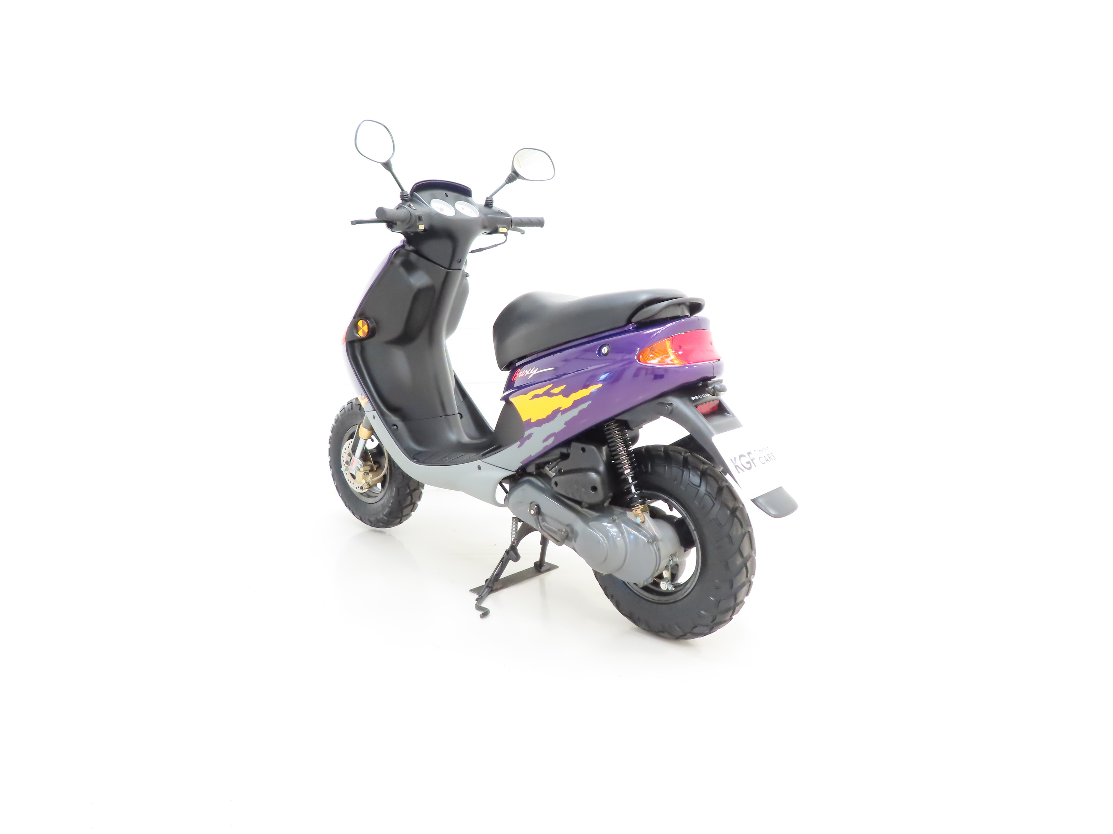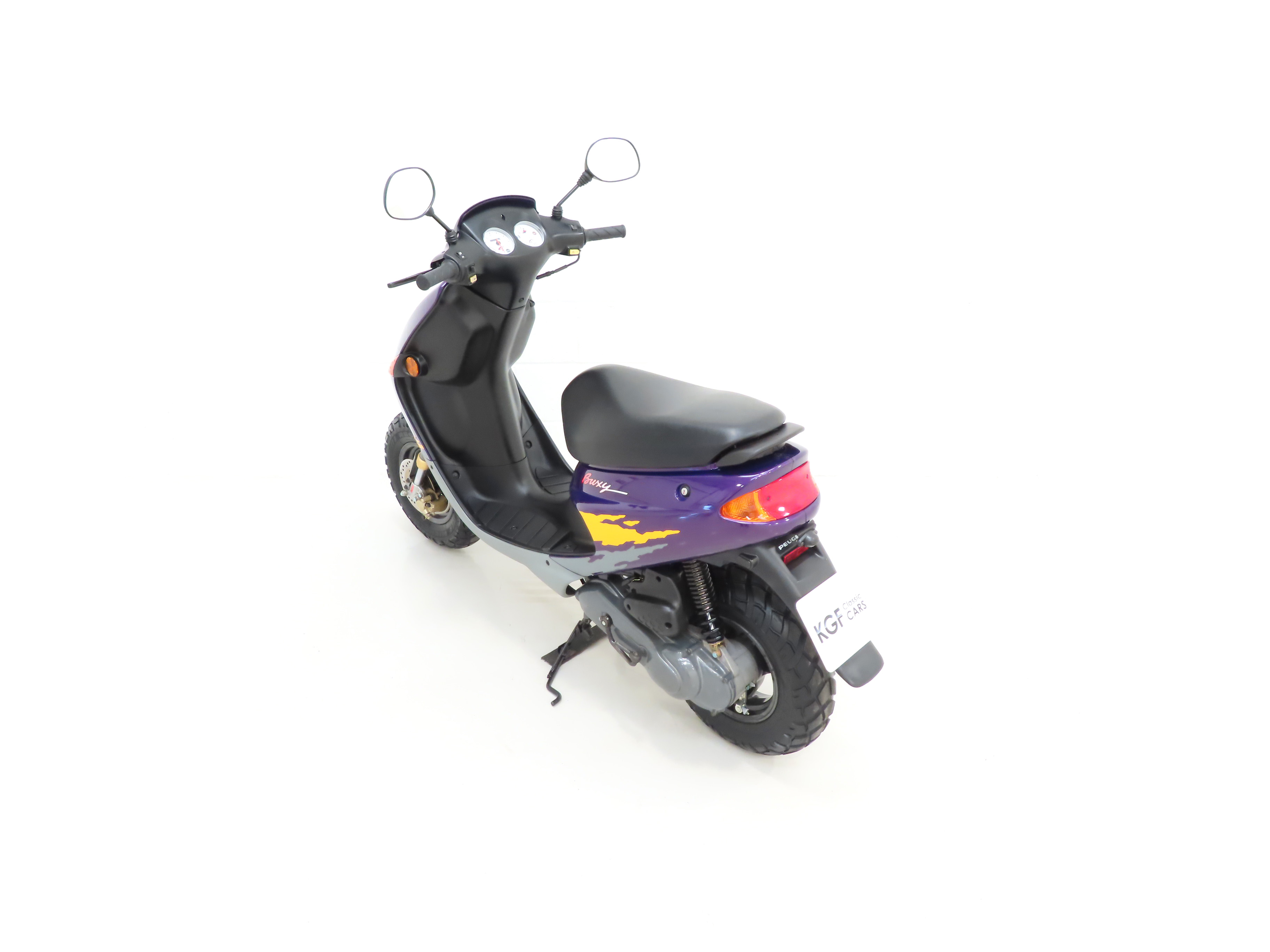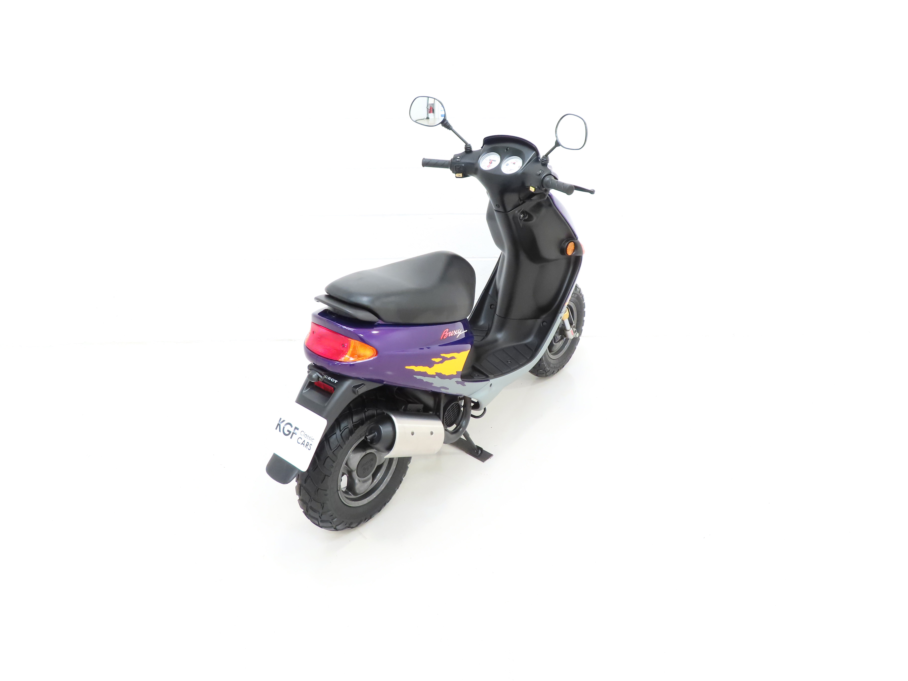 In 1995, a company called Three Cross Motorcycles began importing Peugeot scooters to the UK. Mr Gudgeon, a Garden Centre Proprietor, purchased a number of unregistered scooters with the idea to retail them from his Garden Centre business. The Buxy was priced at £1,549 + OTR charges but after limited success with this venture, it was decided that his skills lay in selling soil and mulch, not scooters and mopeds! All bikes were sold bar two, this Buxy and a similar Zenith L model. The very minimal mileage was accrued as the scooters were used for fun on the large garden centre site and they were stored at other times in one of the large dry barns. KGF Classic Cars are selling this bike as an unregistered example, however an official dating certificate has been acquired from Peugeot Scooters confirming the bike was manufactured on the 10th November 1995. This will allow the bikes to easily be UK registered with the DVLA. The bike starts, runs and rides and all functions operate, however the bike is being sold as an unregistered collector’s example for display and full recommissioning, MOT and registration will be required if the bike is to be put into use.