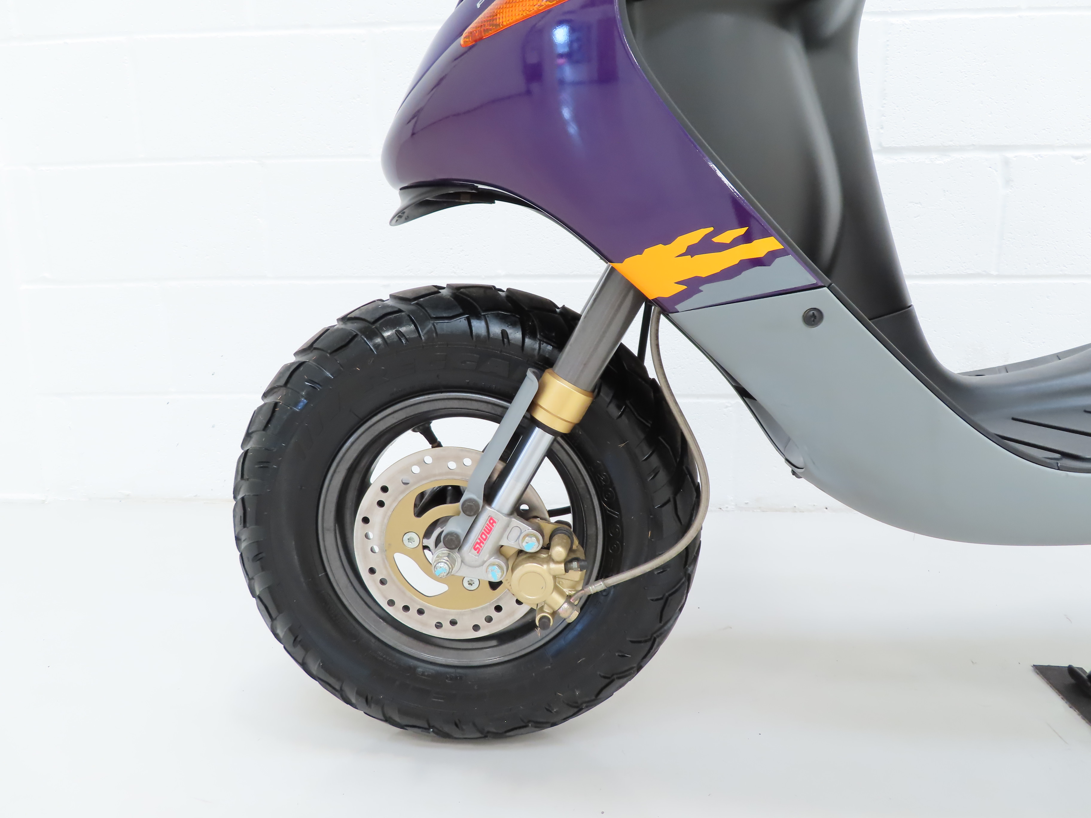 The 2-stroke single cylinder air cooled engine features CDI ignition, automatic choke and electric start for effortless everyday use. This quiet 50cc unit is incredibly frugal! All mechanical components are spotless clean with factory PDI dabs preserved and the original exhaust remains fitted. The fully auto transmission with automatic centrifugal clutch works perfectly and allows straightforward fool proof scootering with a guaranteed beaming smile!
