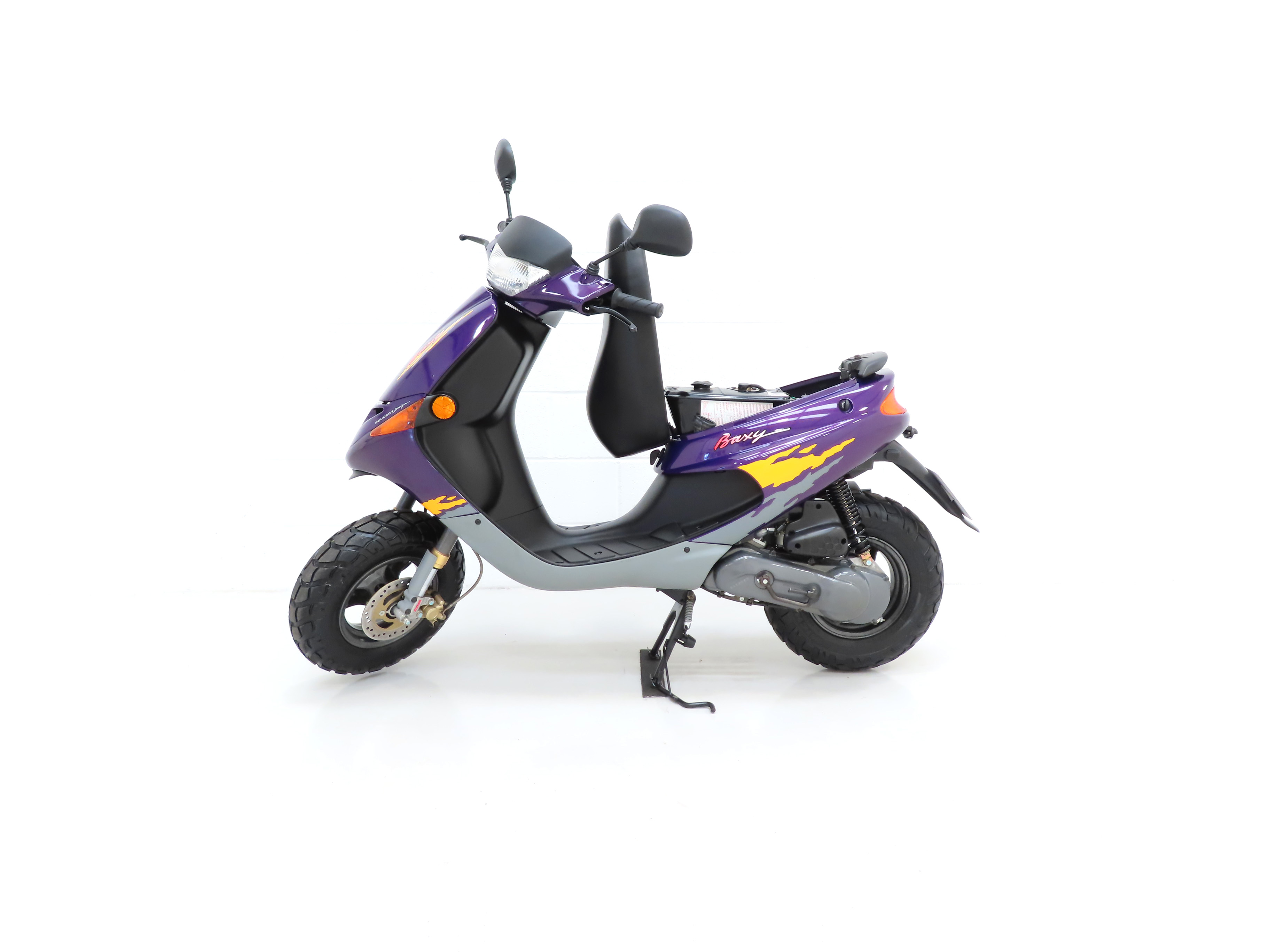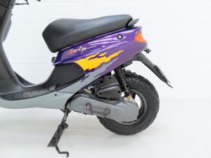 Peugeot Motorcycles designed the Buxy model in conjunction with a series of trendy 50cc bikes which included the chic Zenith and distinctive Squab and Speedake models and even a fully electric version called the Scoot’elec. Hugely popular particularly in European cosmopolitan cities very few survived past the Millennium!