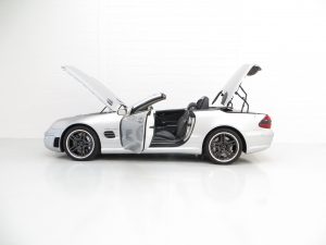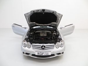 This phenomenal Mercedes-Benz SL65 AMG, the most powerful standard-production roadster in the world at the time of launch is finished in original Mercedes Brilliant Silver Metallic, (Code 744). Having covered a mere 48,164 miles from new, the factory paintwork boasts a beautiful crisp shine and uniform finish. Certainly not detracting from stunning muscular lines of this hot-blooded supercar are a few minor paintwork imperfections including some stone chips to the front. AMG body styling unique to the SL65 with side air outlets and AMG V12 design twin tailpipes ensure the aesthetics are commensurate with the insane 612hp performance! The Electro-hydraulic Vario roof with expensive optional panoramic glass operates with speed, finesse and micro-precision. An epic performance roadster.