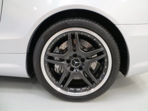 Unique to the SL65 are 19” AMG split rim alloys wheels in Titanium Grey which remain in near perfect condition, whilst premium brand tyres of size 255/35 R19 and 285/30 R19 front and rear respectively have masses of tread remaining. The high-performance braking system feature massive composite discs which have a diameter of 390mm at the front and 360mm at the rear. The huge ornate callipers are prominent through the large spoke openings and remain in the correct silver.